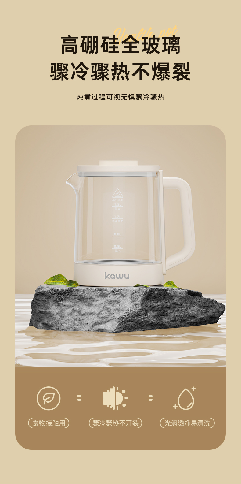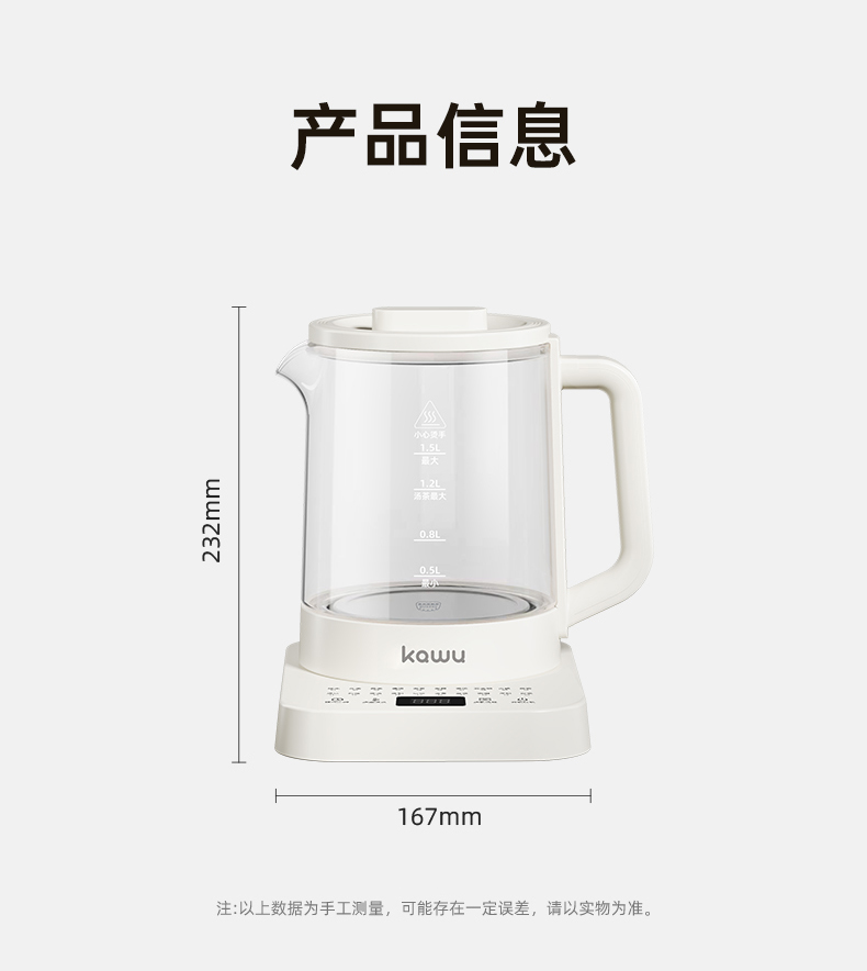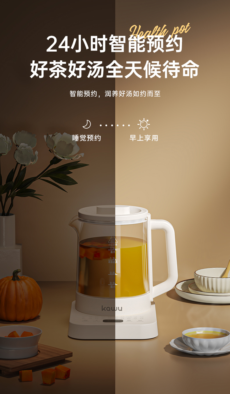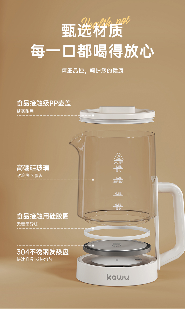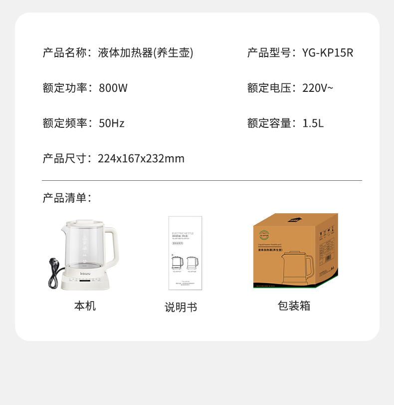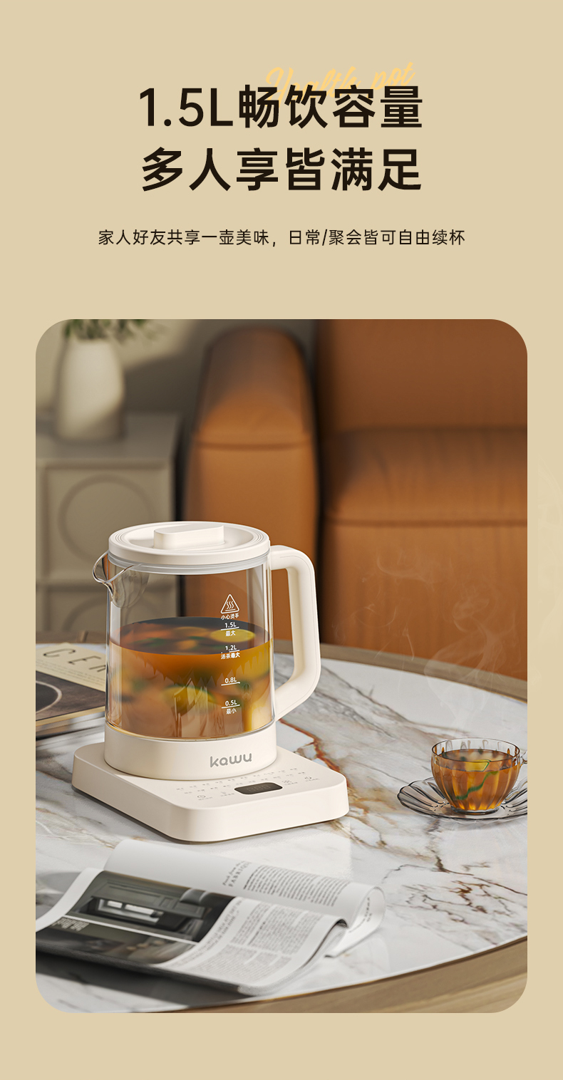 卡屋(kawu) 智能养生壶 YG-KP15R 1.5升 白色(单位:台)