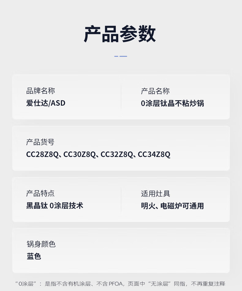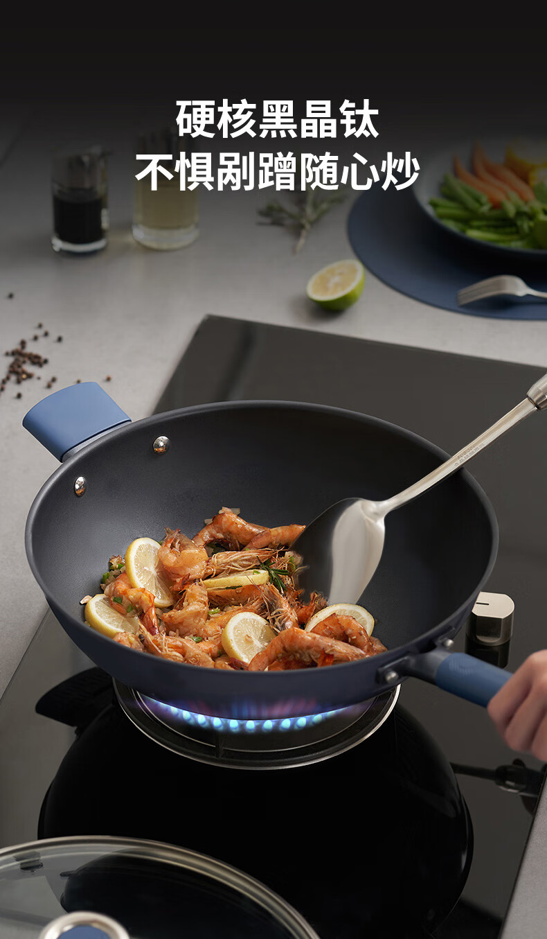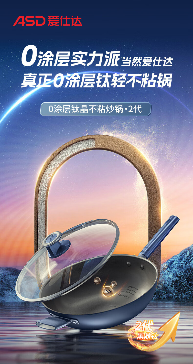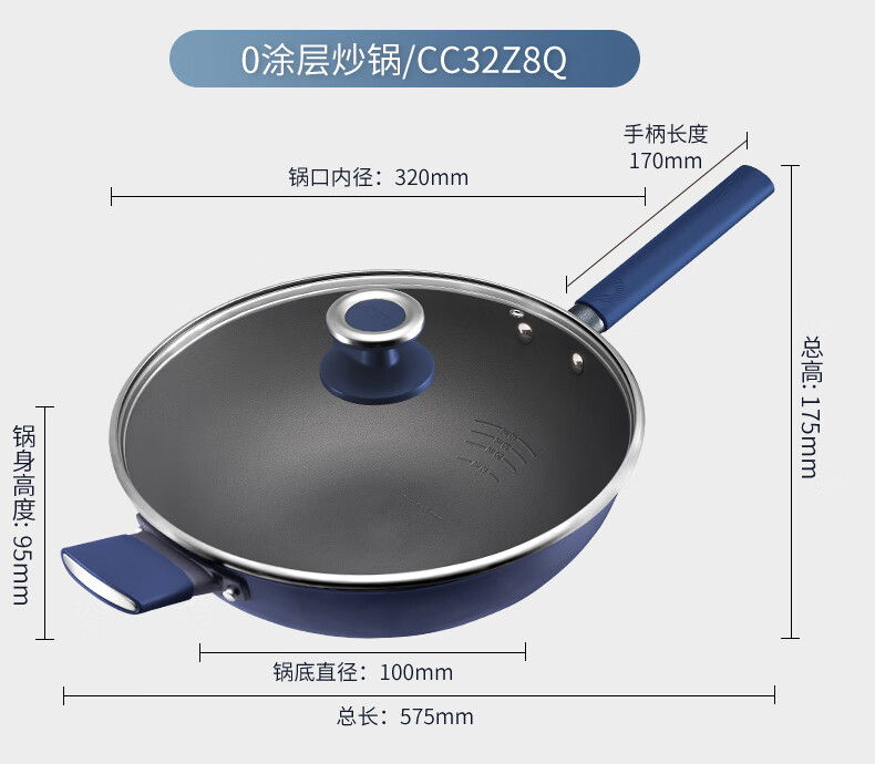 爱仕达(ASD) 0涂层钛晶不粘炒锅含锅盖 CC32Z8Q 32cm 深蓝色(单位:个)