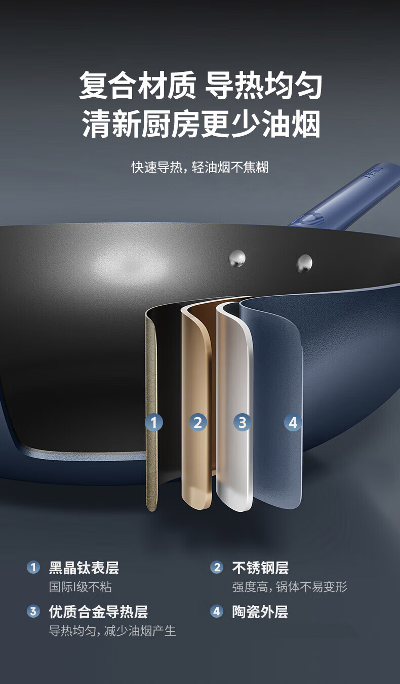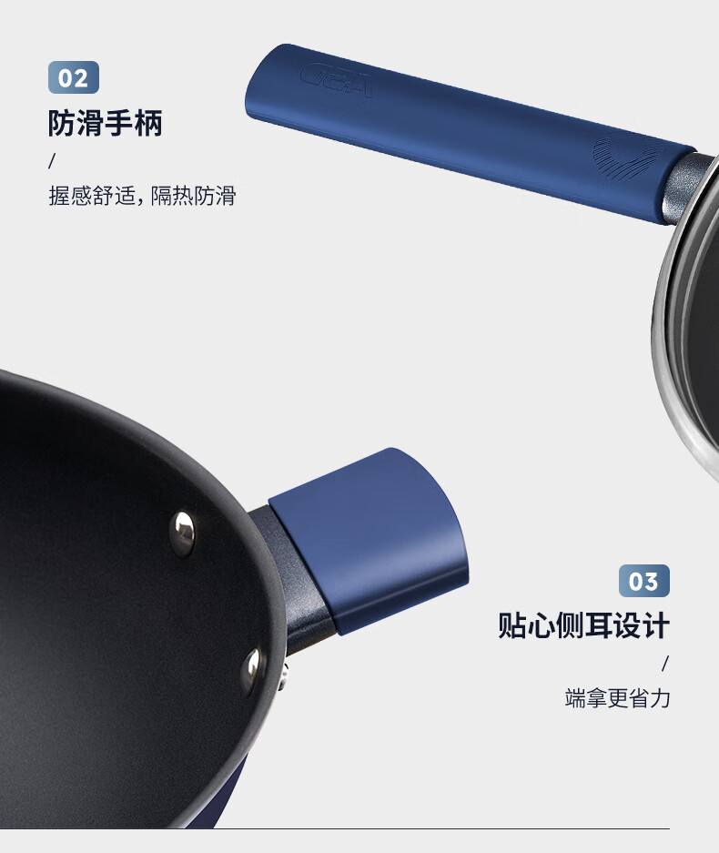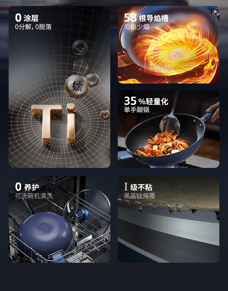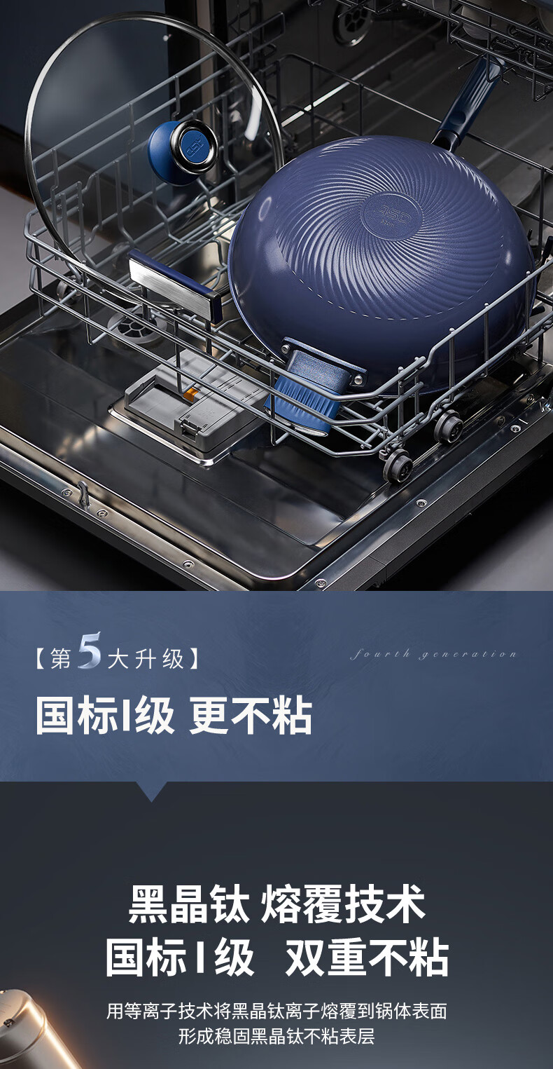 爱仕达(ASD) 0涂层钛晶不粘炒锅含锅盖 CC32Z8Q 32cm 深蓝色(单位:个)