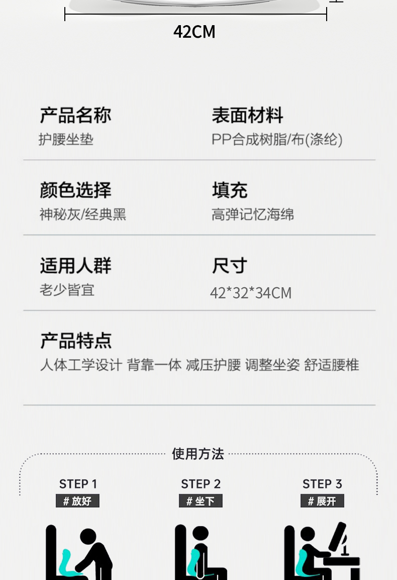 美仕达(Misida) 矫姿坐垫 MS-Y3 420*320*340mm 灰色(单位:个)
