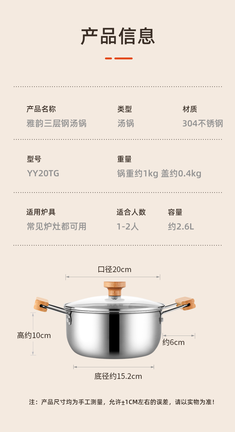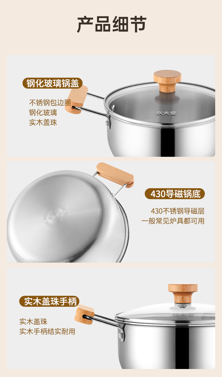 炊大皇 雅韵汤锅 YY20TG 20cm 不锈钢色(单位:只)