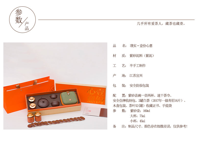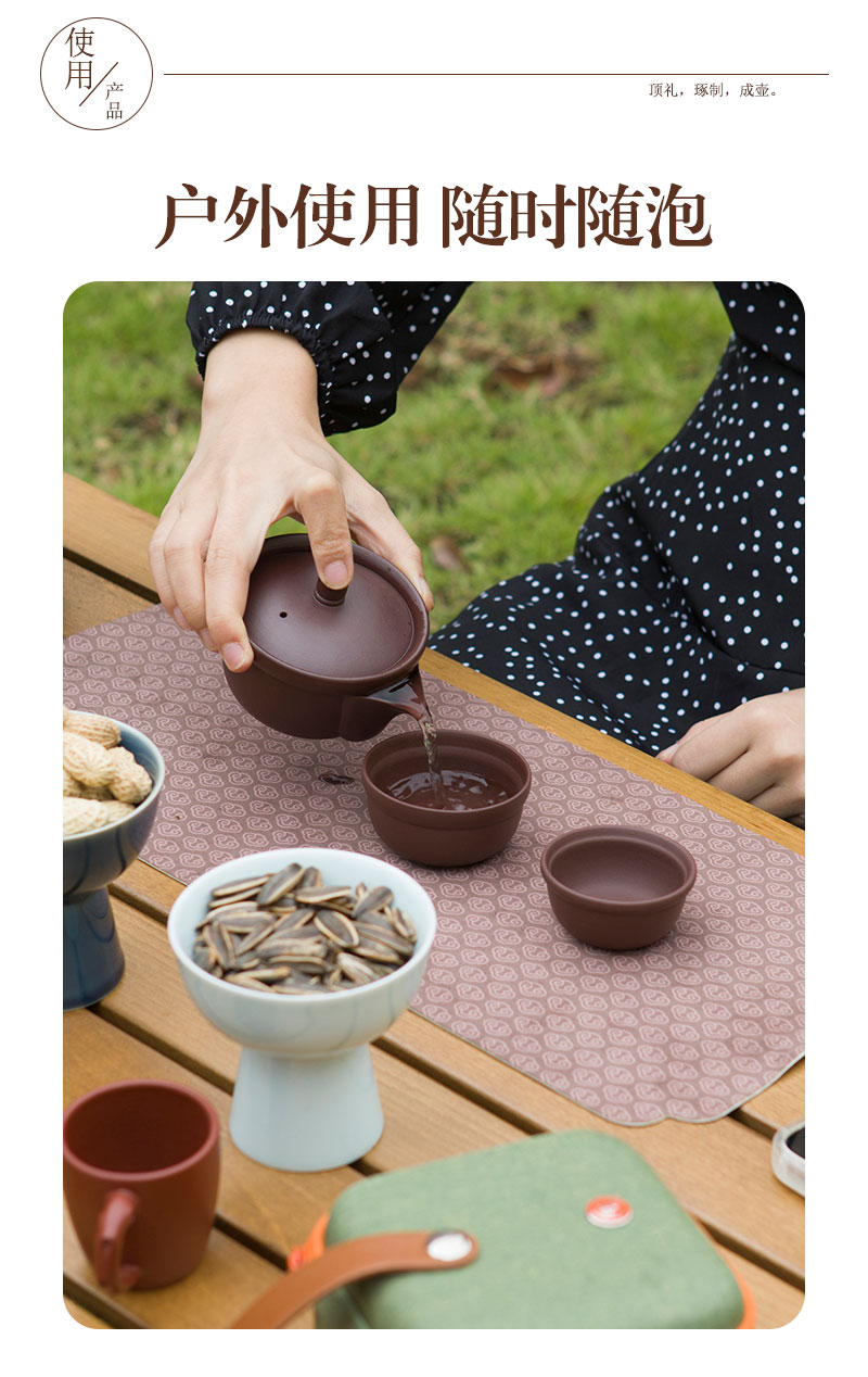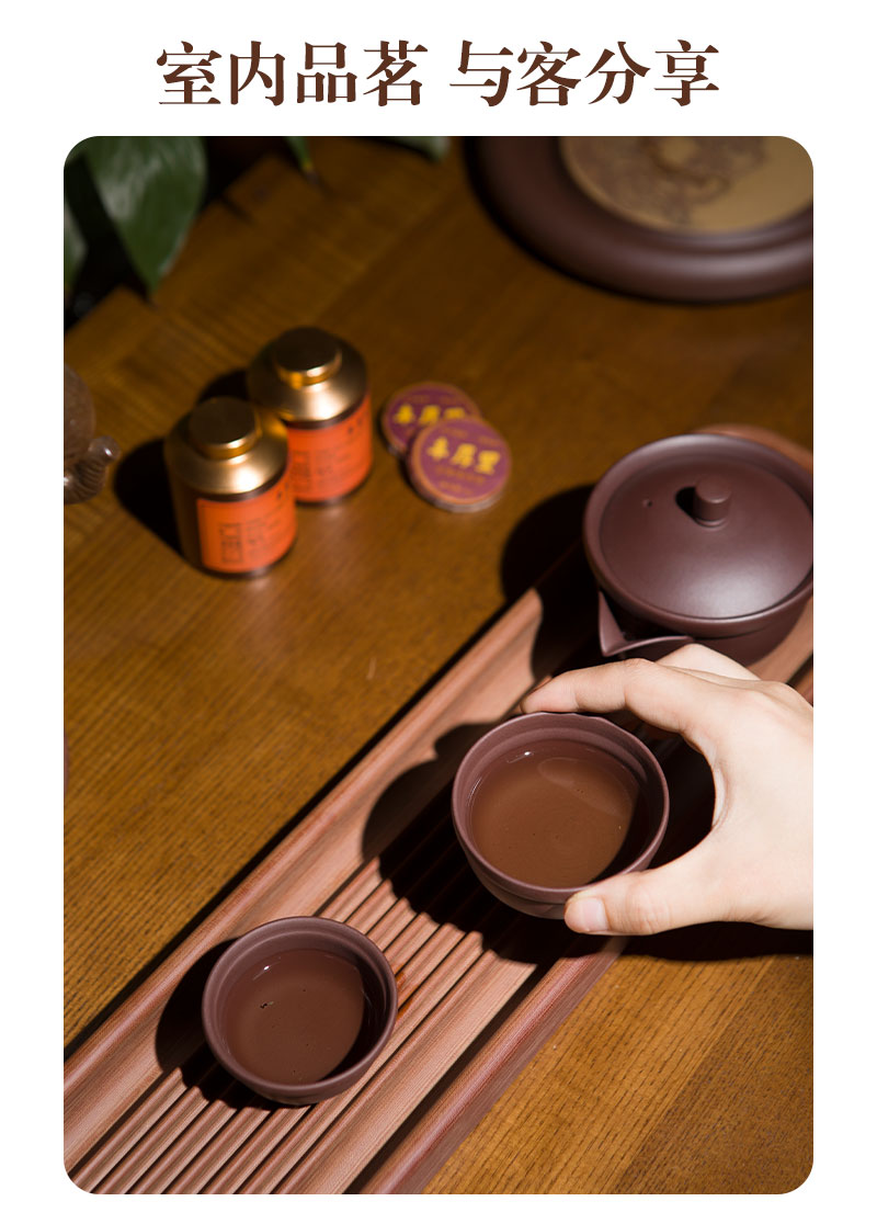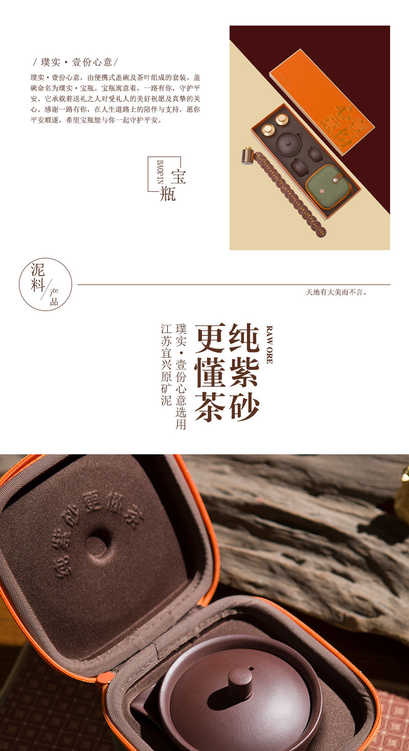 璞实茶器 盖碗便携套装6件 壹份心意 160ml一壶两杯白茶80g 紫砂(单位:套)