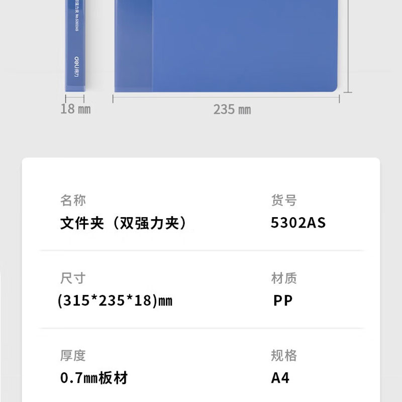 得力(deli) 文具夹 5302 310*235mm 蓝色(单位:个)
