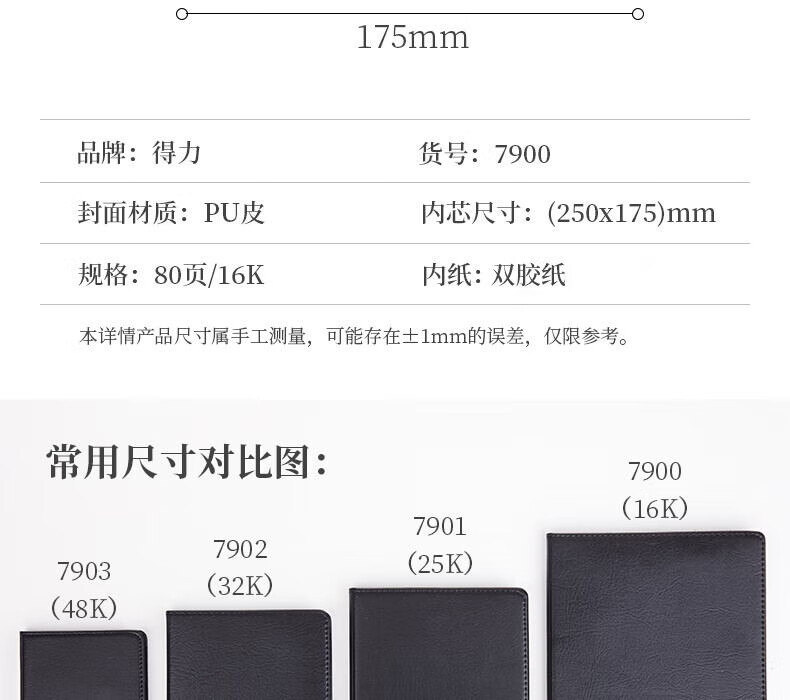 得力(deli) 皮面笔记本 7900 16k 黑色(单位:本)