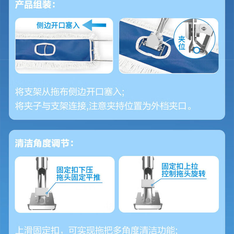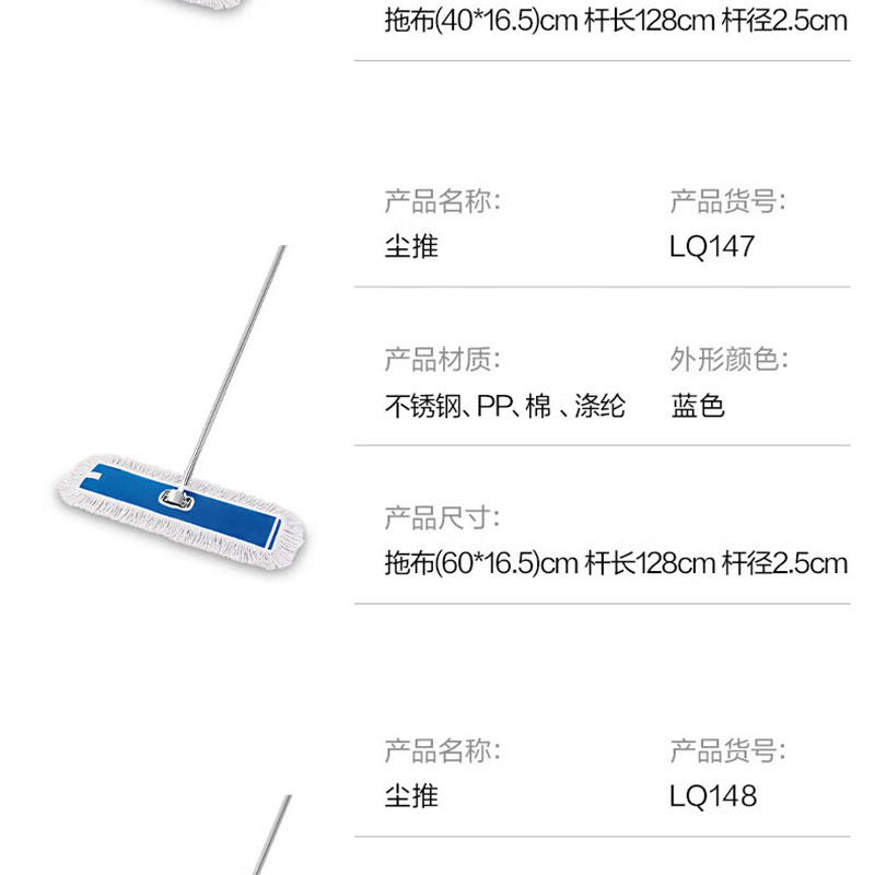 得力(deli) 棉纱拖把 LQ147 128*60cm 蓝色(单位:把)