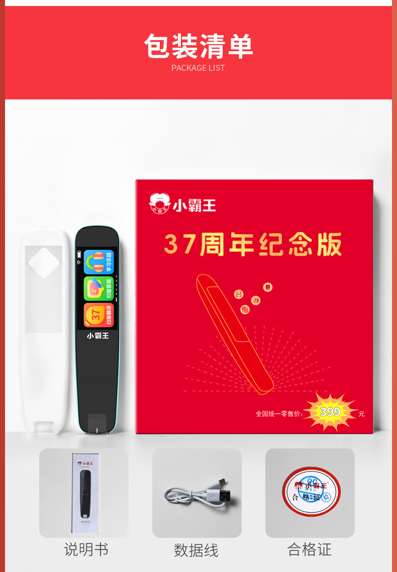 小霸王 扫读笔学习机点读笔 B100纪念版 小学初中高中通用 黑色(单位:台)
