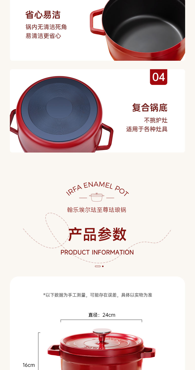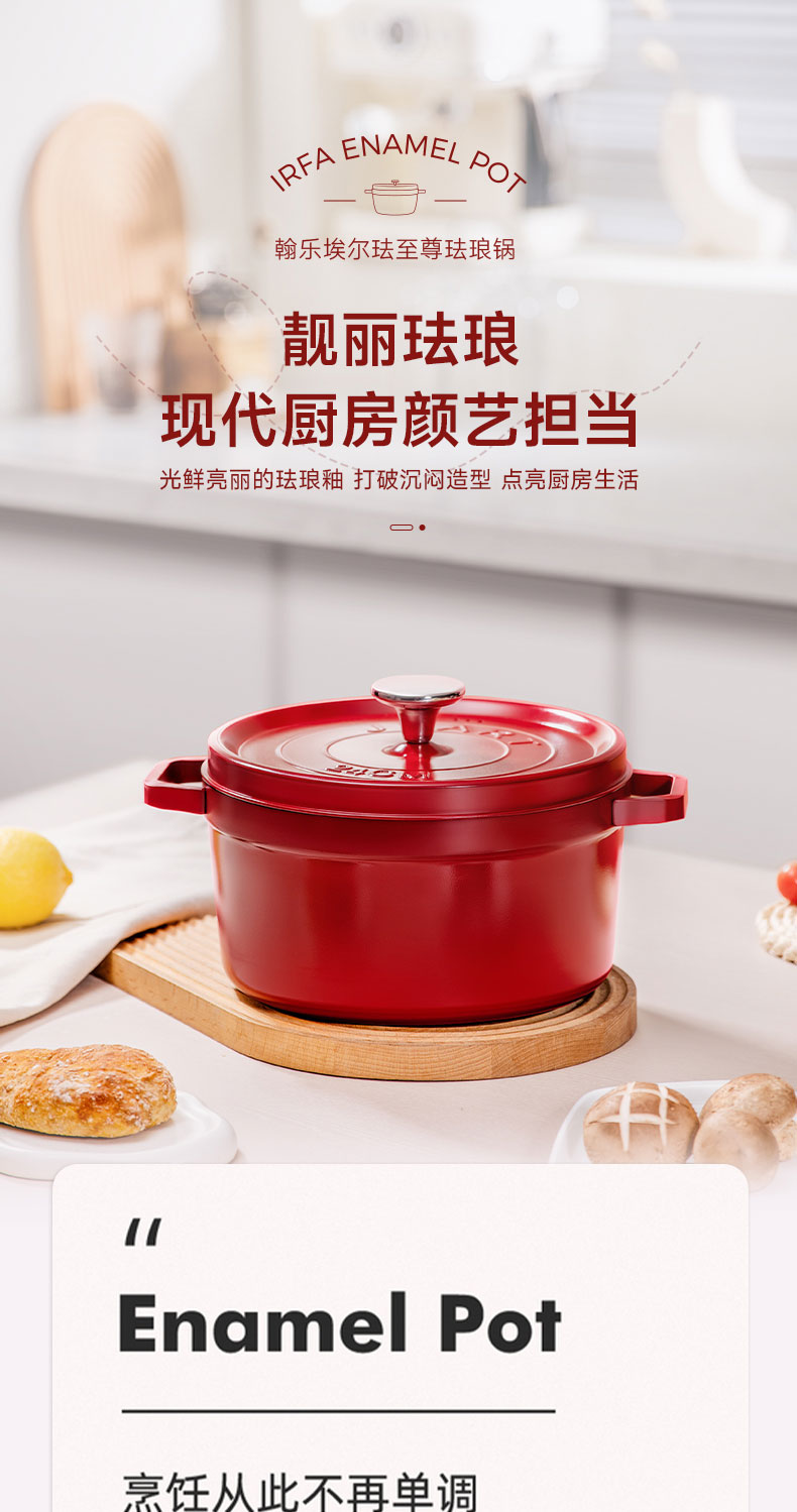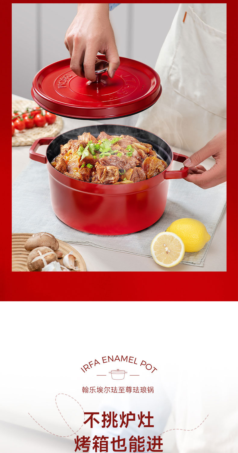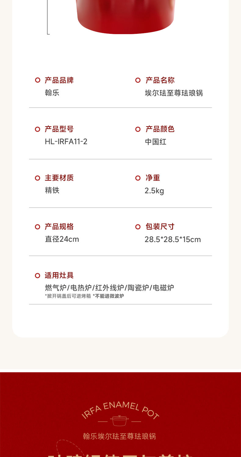 翰乐 埃尔珐至尊珐琅锅汤锅 HL-IRFA11-2 24cm 中国红(单位:套)
