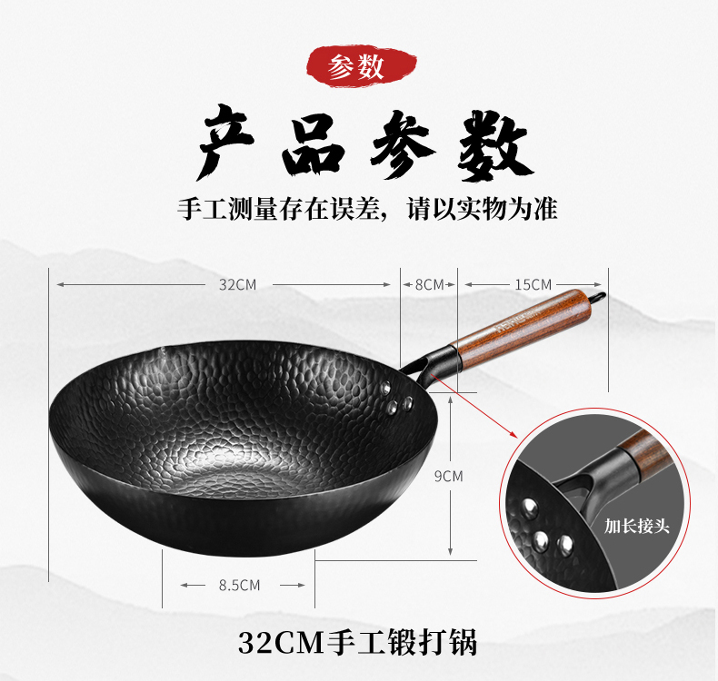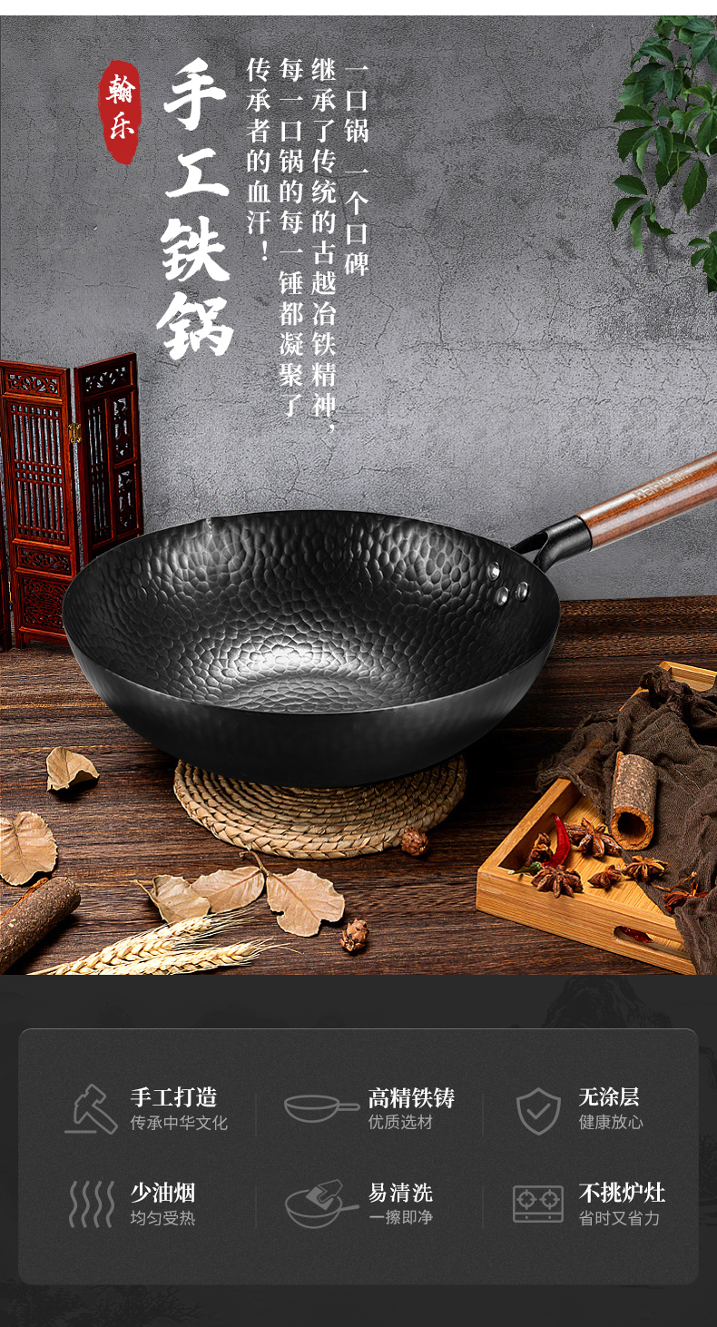翰乐 章丘铁锅 TTM-8866 32cm 黑色(单位:套)