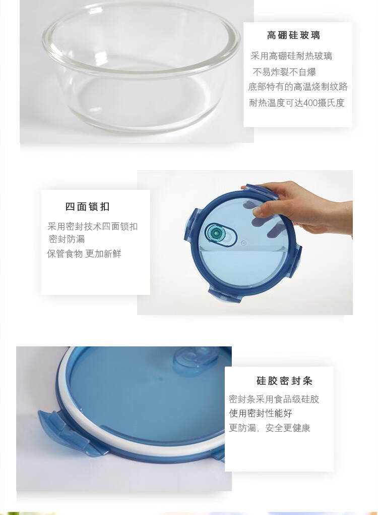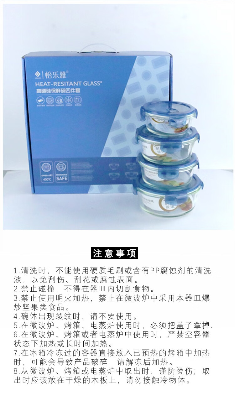 怡乐雅 高硼硅保鲜碗 YLYT489 四件套 蓝色(单位:套)