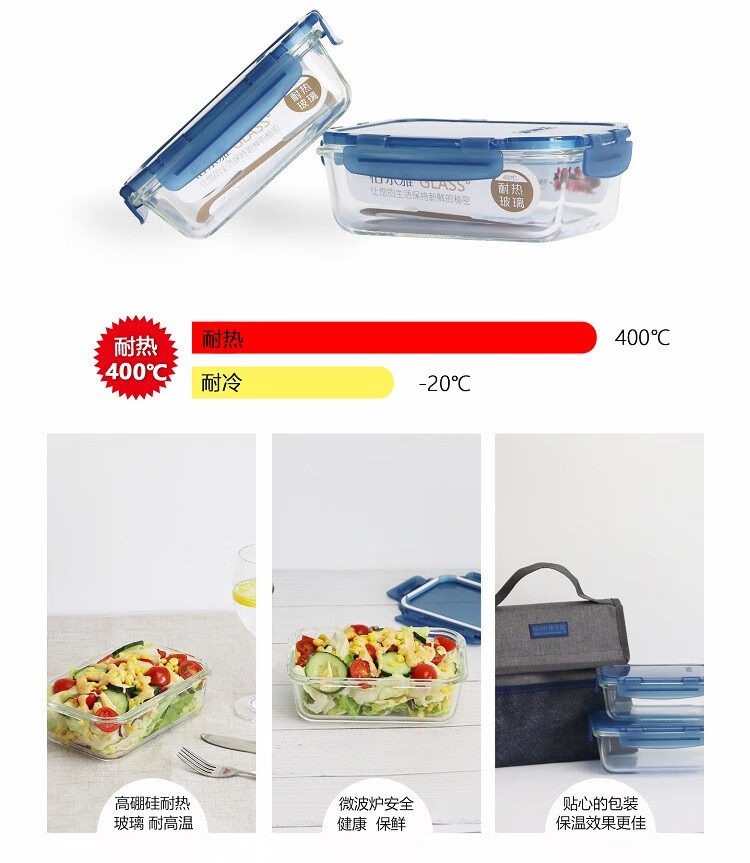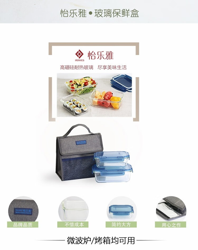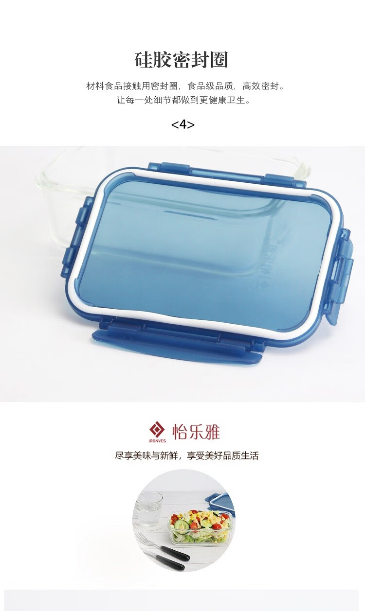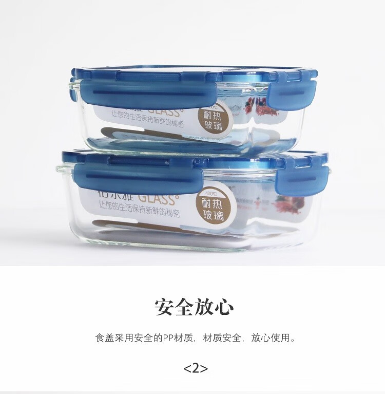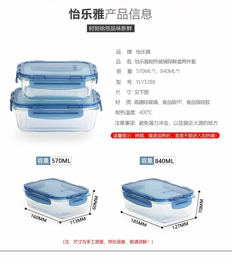 怡乐雅 耐热玻璃保鲜盒 YLYT288 两件套 蓝色(单位:套)
