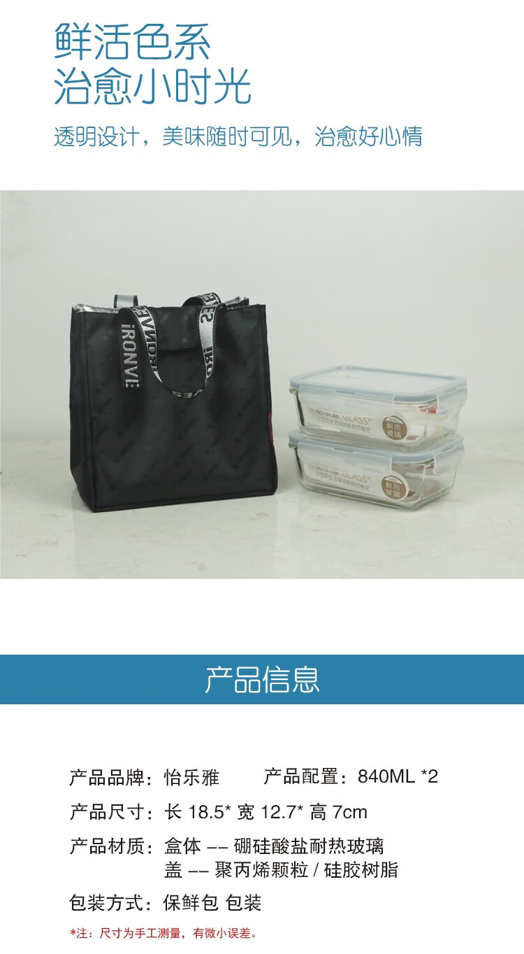 怡乐雅 高硼硅保鲜盒 两件套 YLYT-766 840ml*2 透明色(单位:套)