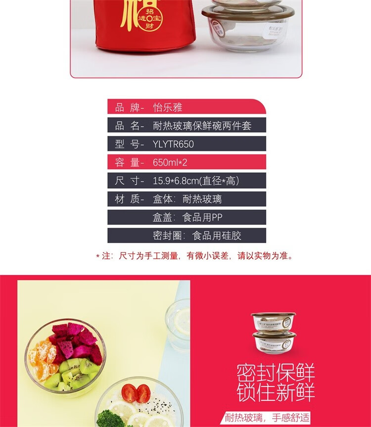 怡乐雅 耐热玻璃保鲜碗 YLYTR650 两件套 褐色(单位:套)