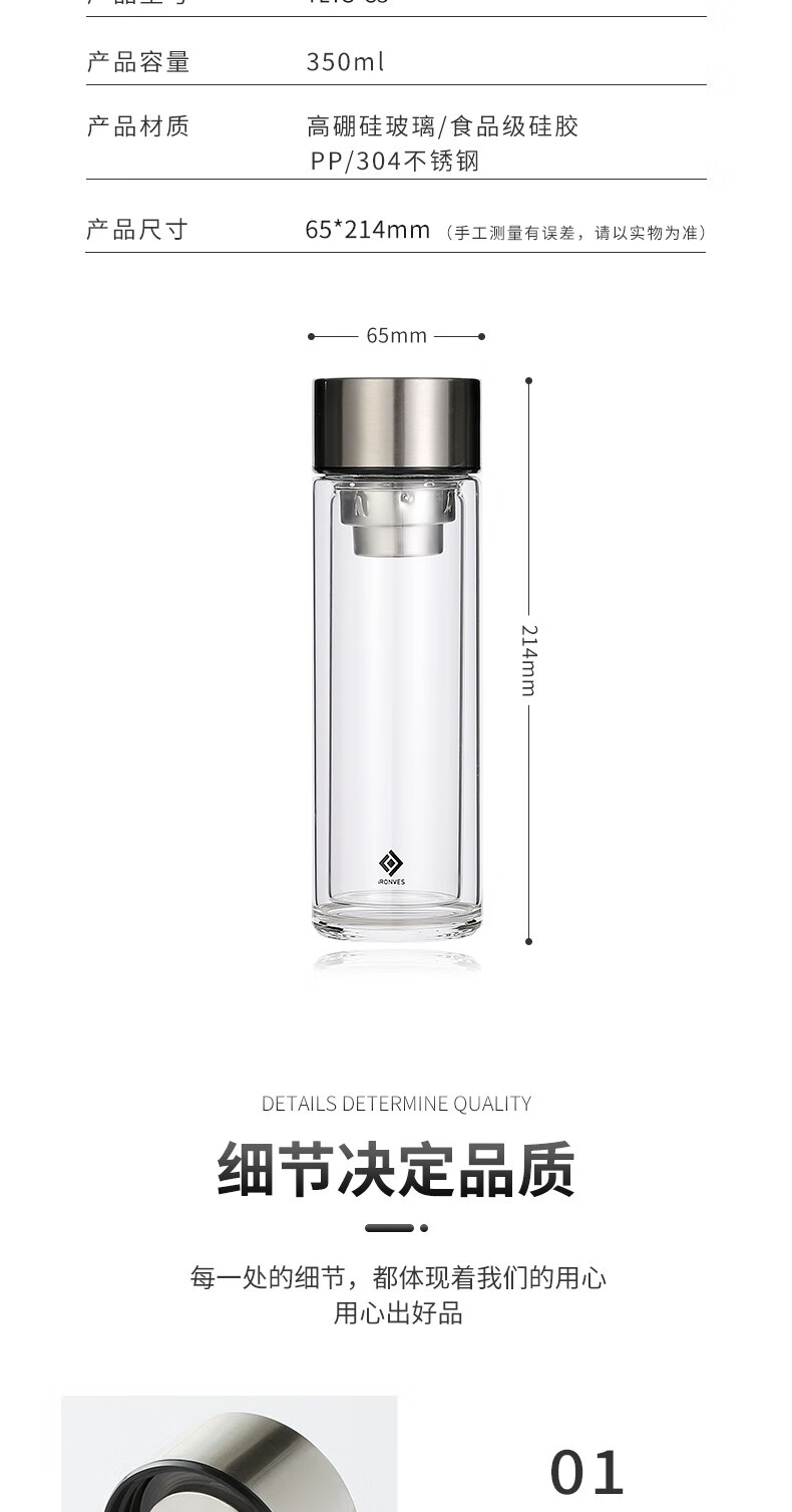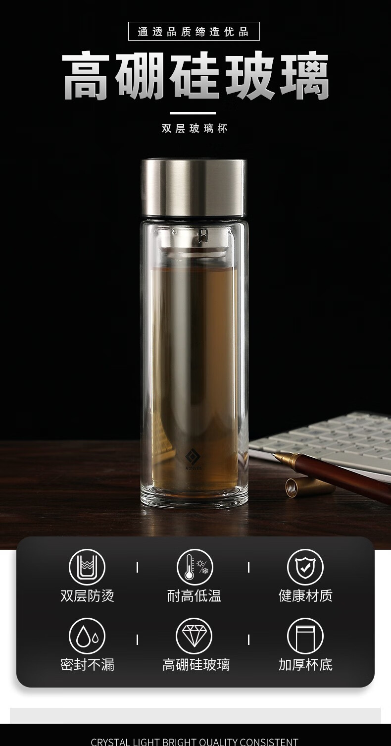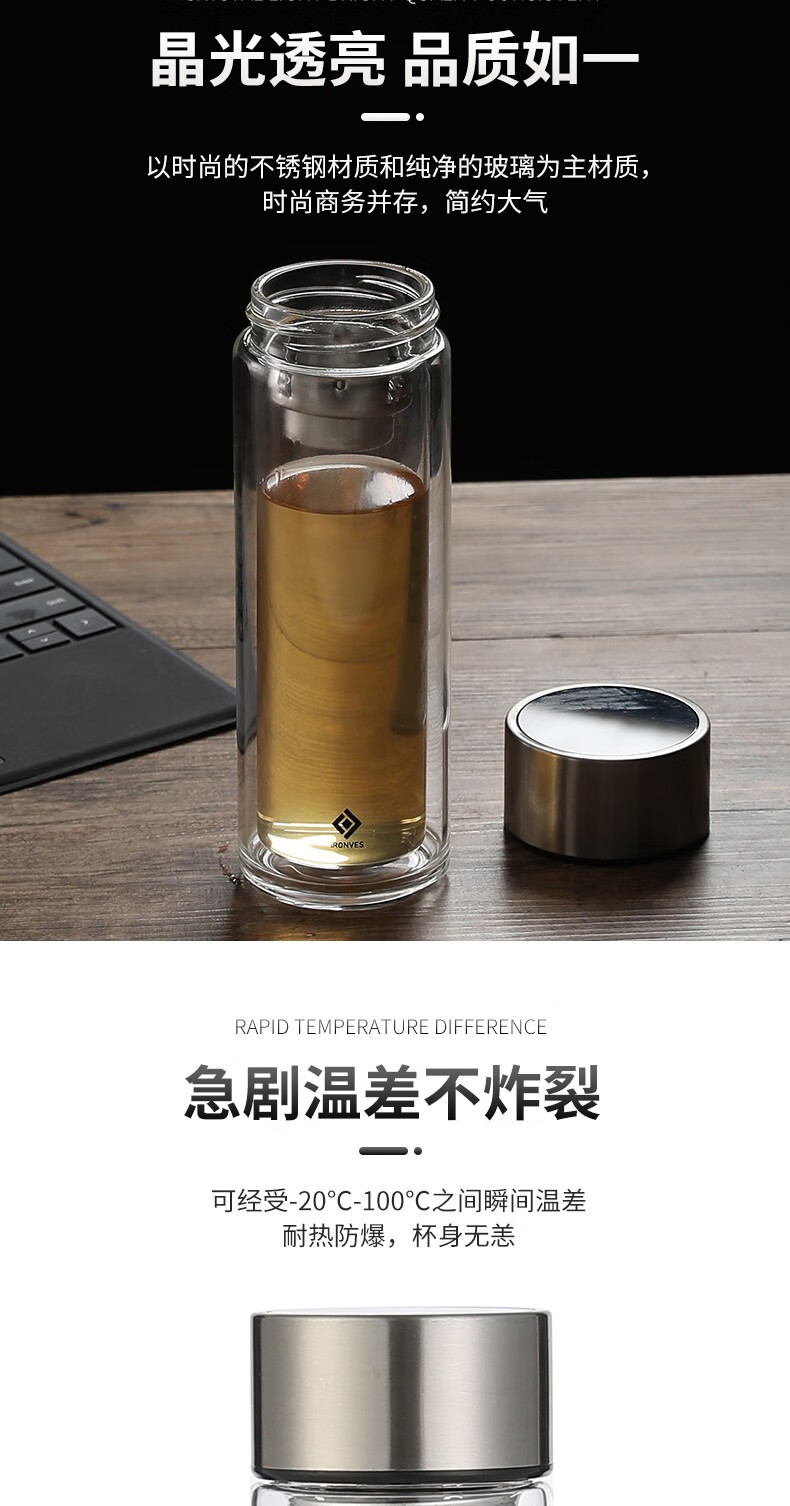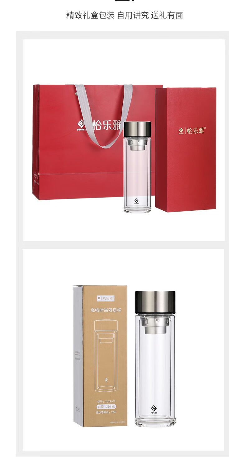 怡乐雅 高档时尚双层玻璃杯 C3 350ml 透明色(单位:个)