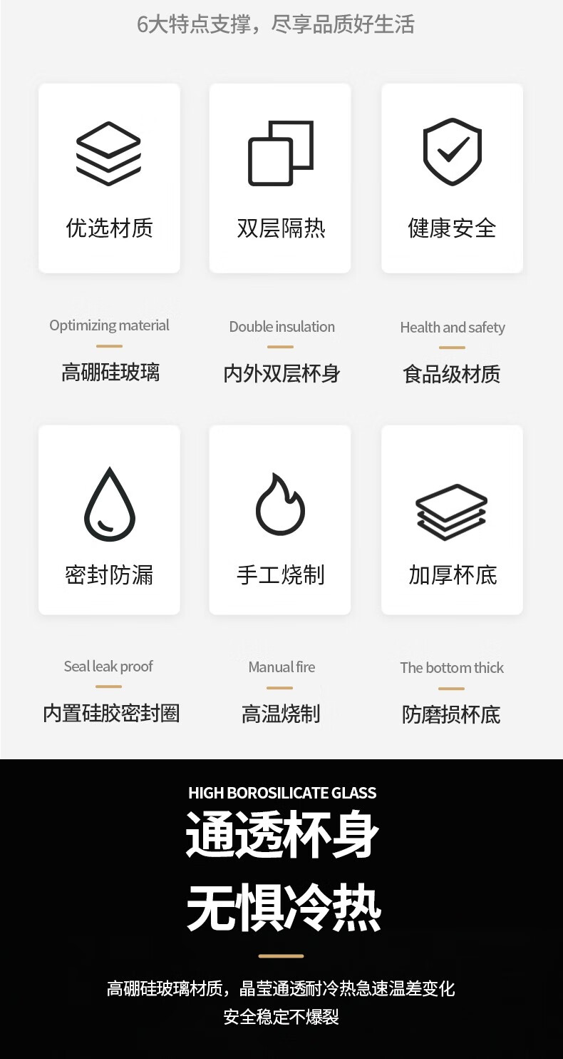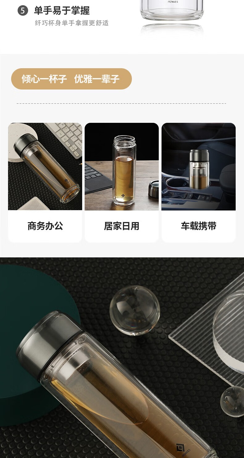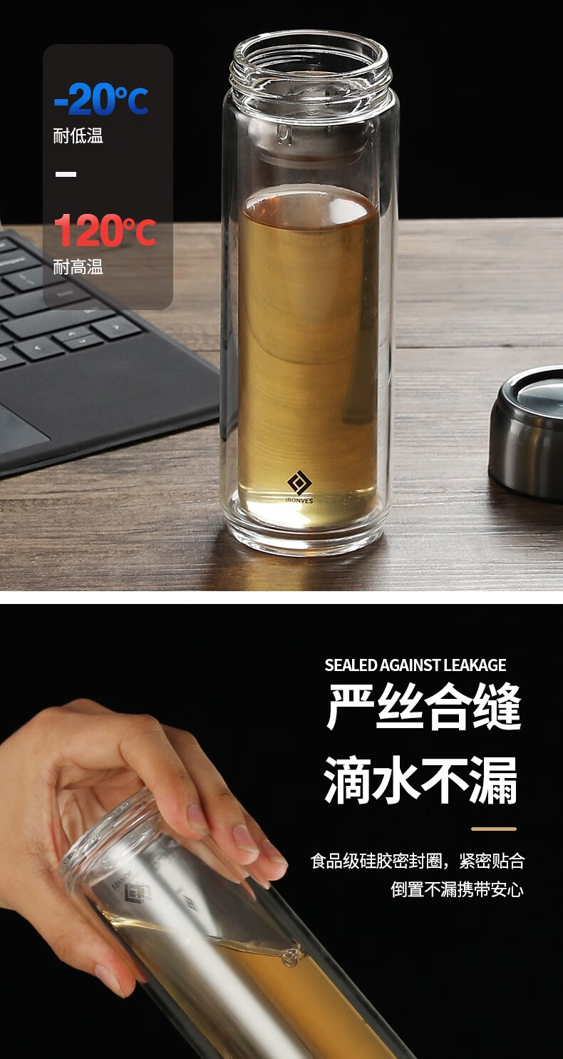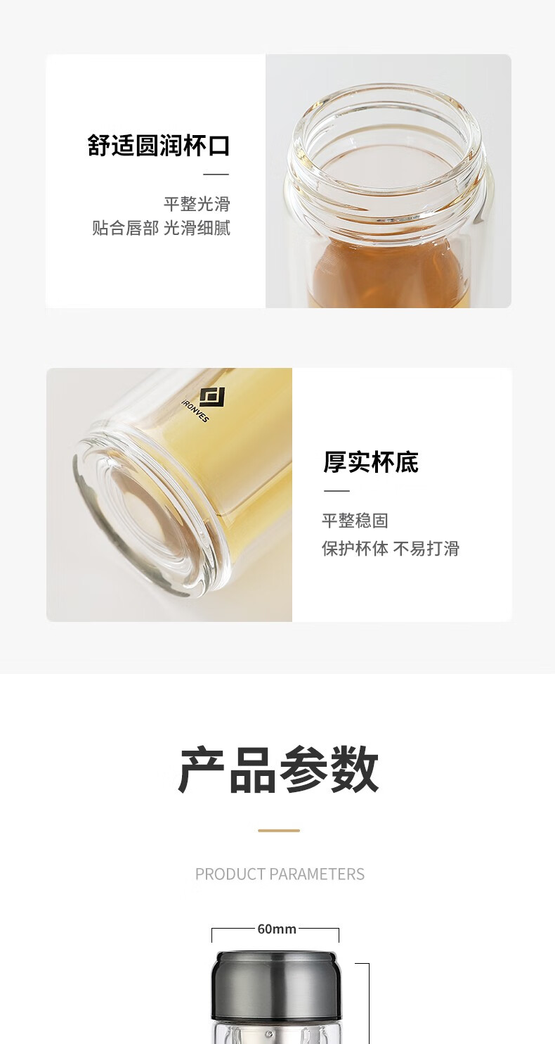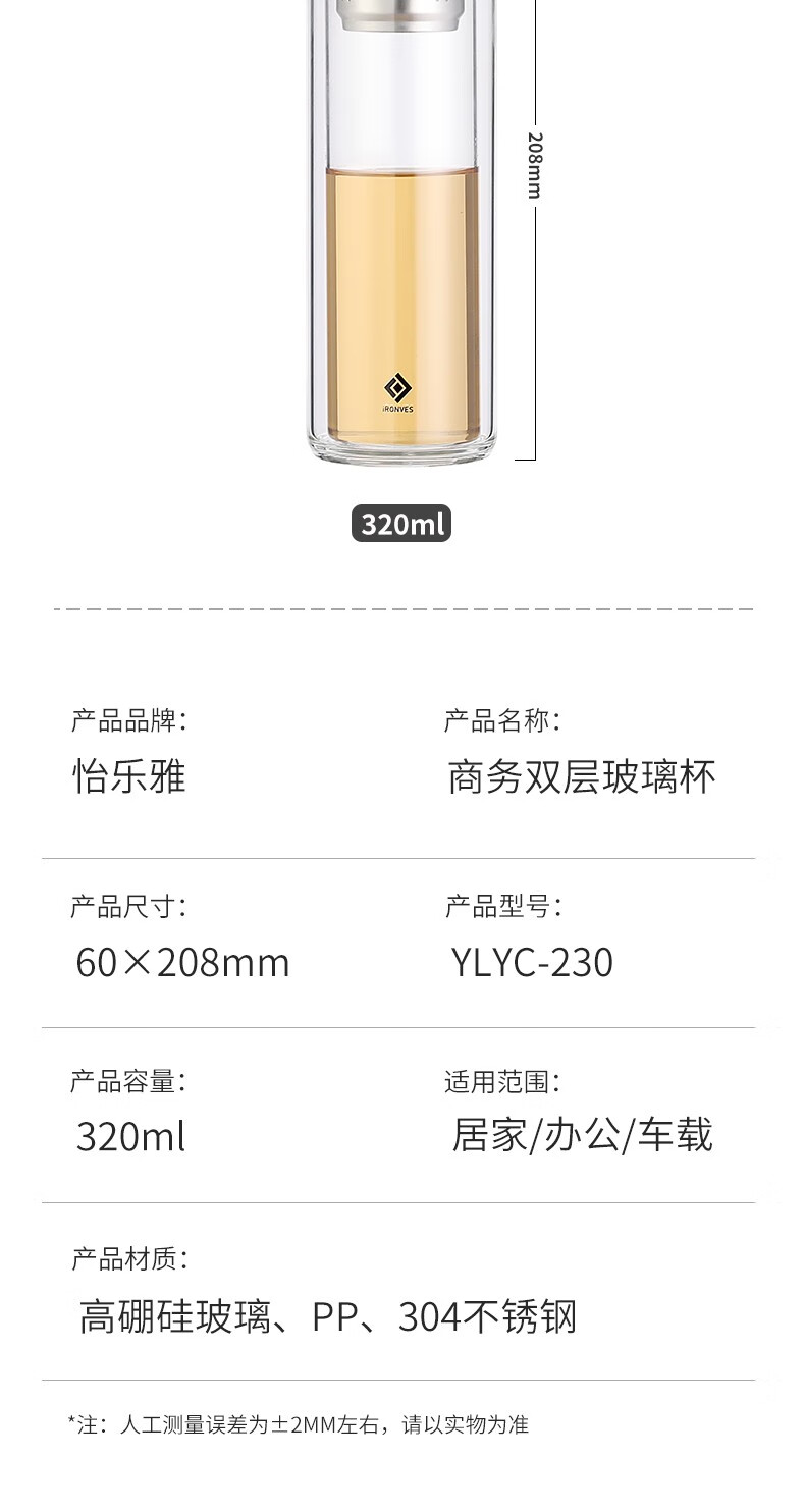 怡乐雅 商务双层玻璃杯 YLYC-230 320ml 透明色(单位:个)