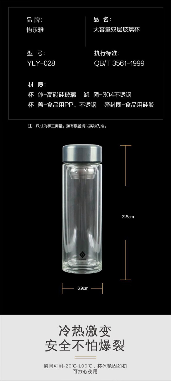 怡乐雅 高档双层玻璃杯 YLY-028 420ML 透明色(单位:个)