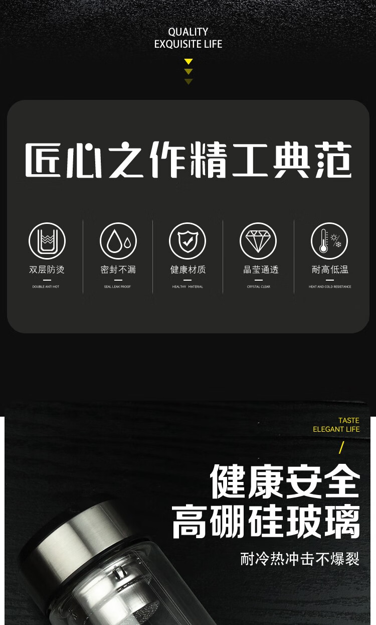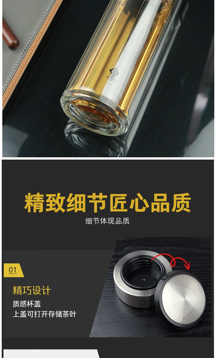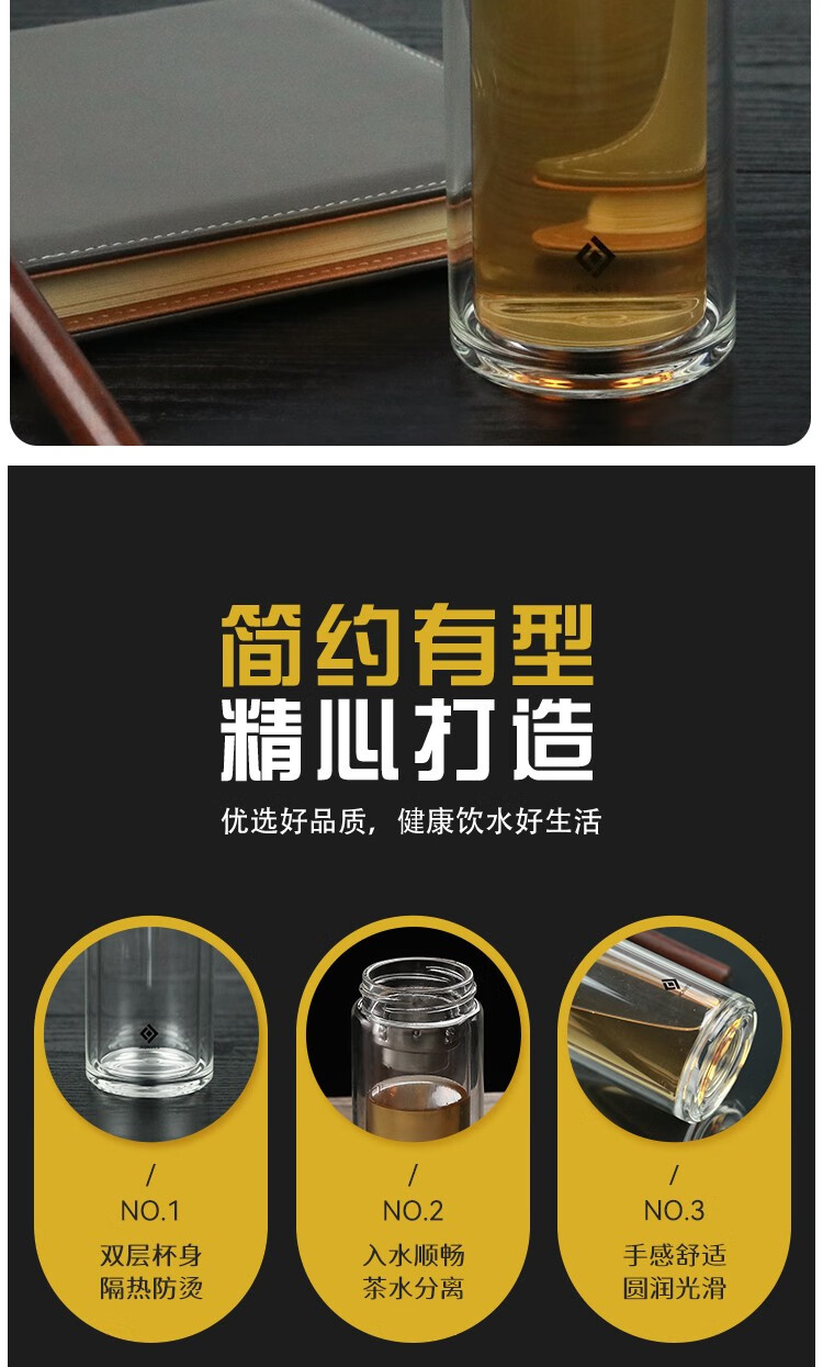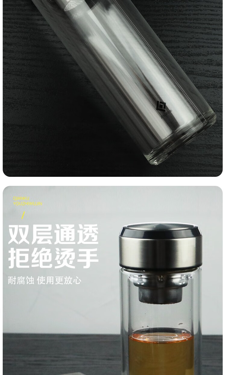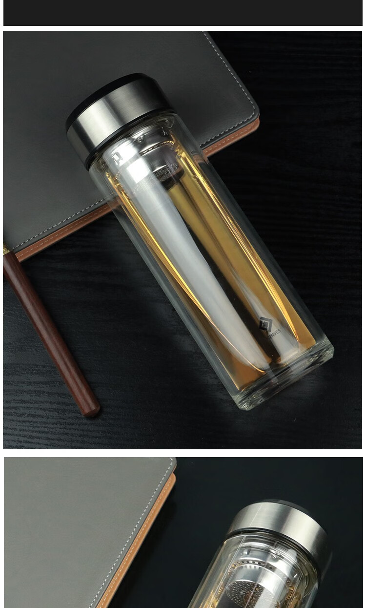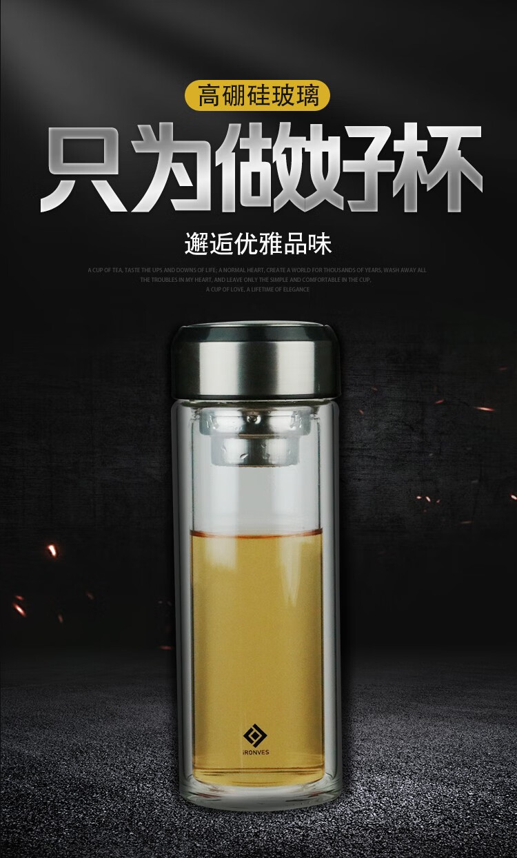 怡乐雅 双层玻璃杯 YLY-030 300ml 银色(单位:个)