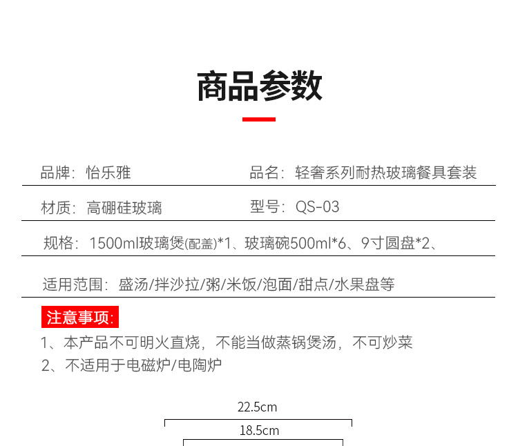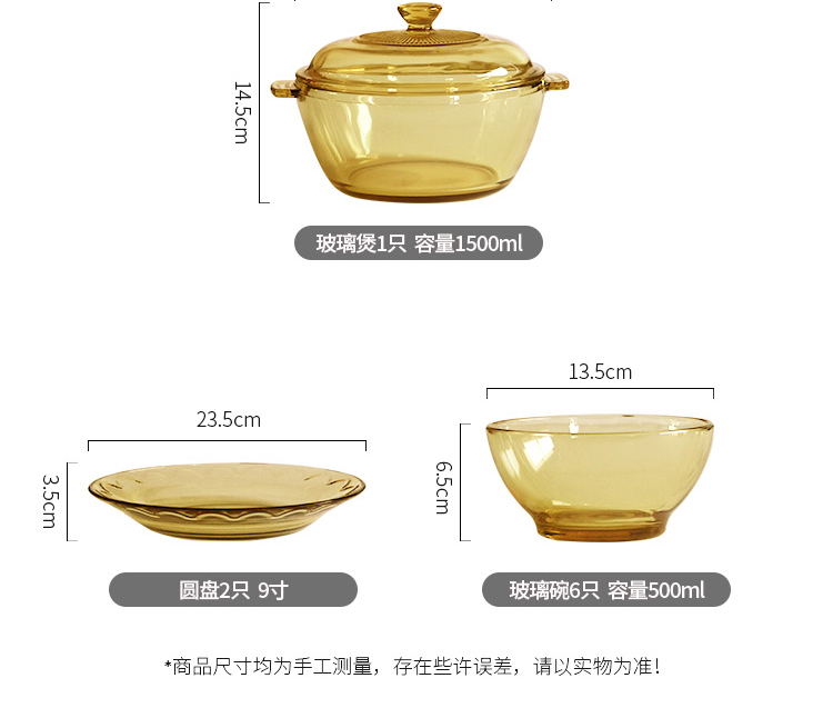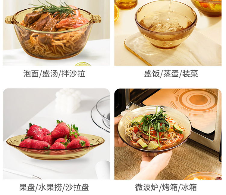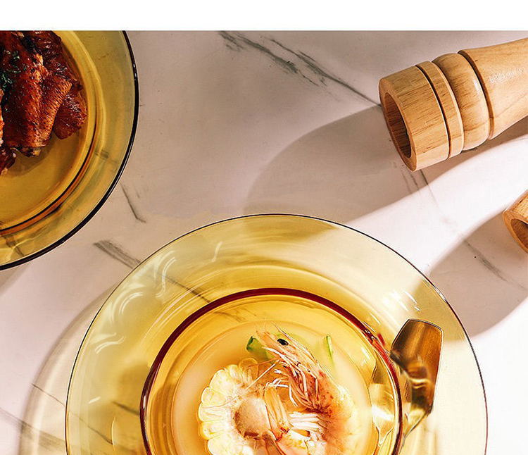 怡乐雅 轻奢系列琥珀色耐热玻璃餐具套装 QS-03 九件套 琥珀色(单位:套)