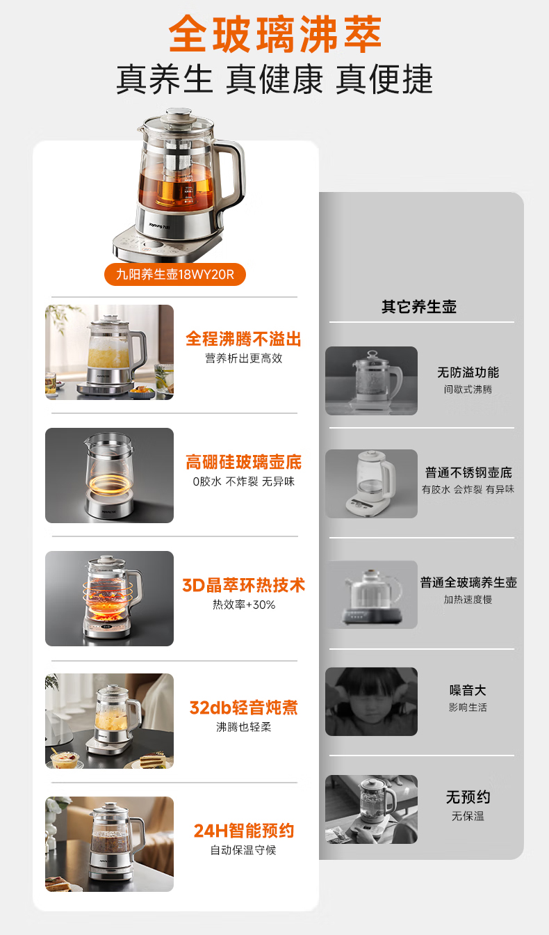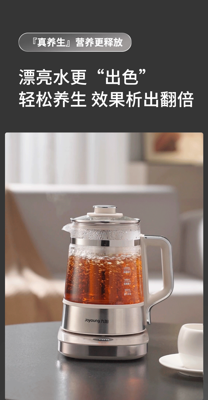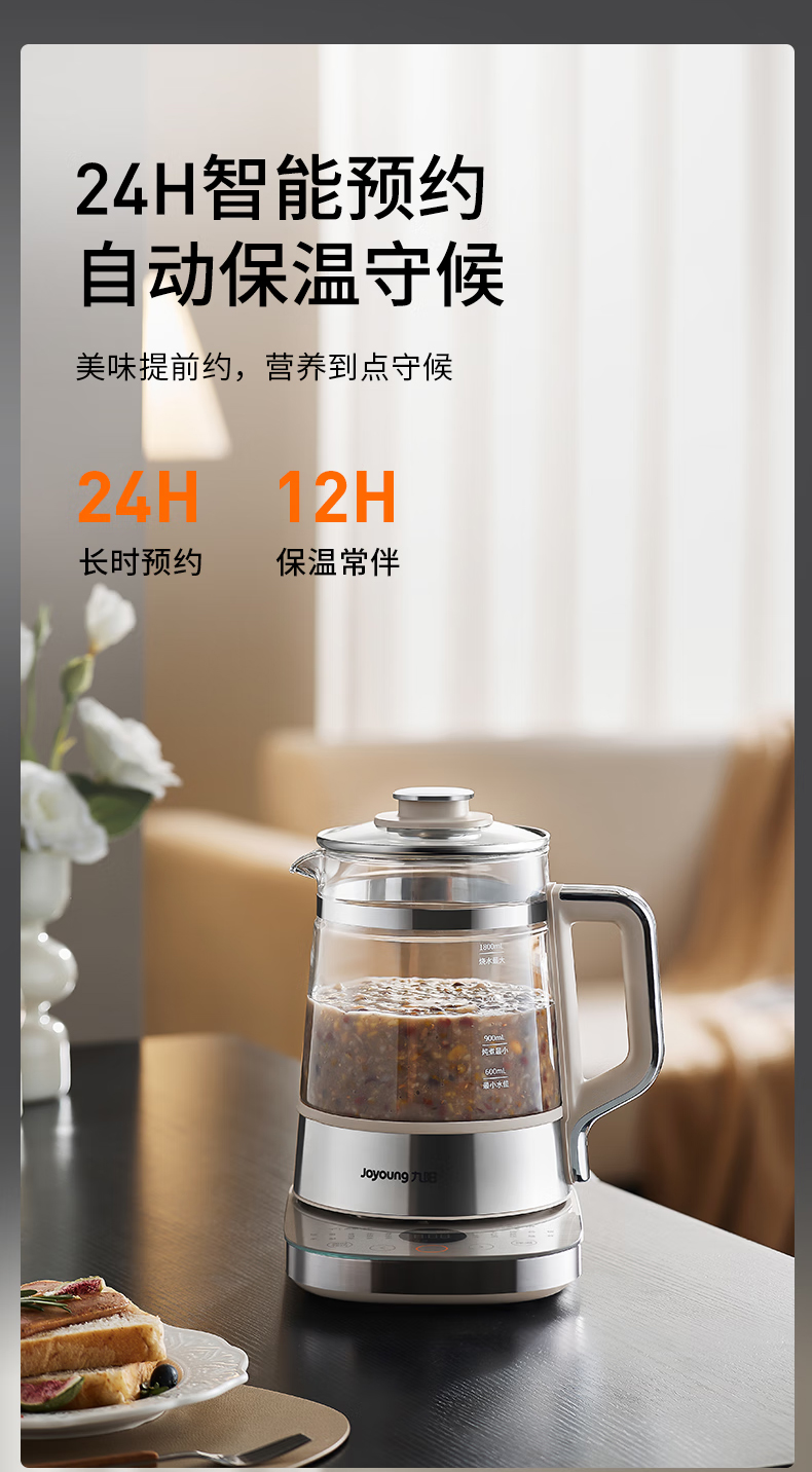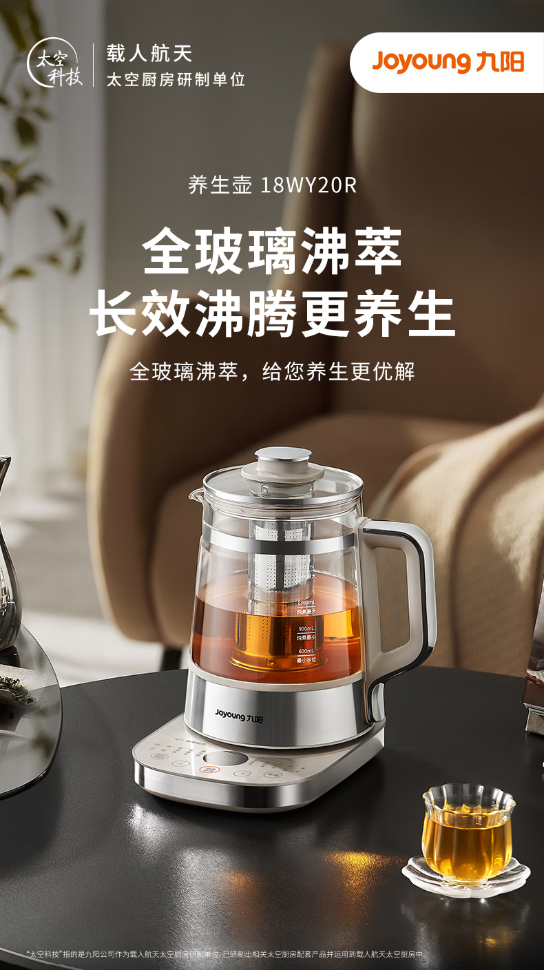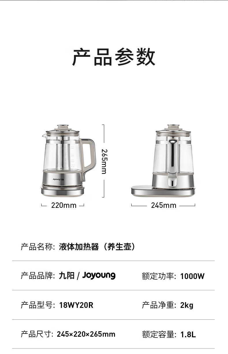 九阳(Joyoung) 全玻璃内胆0胶0钢养生壶 18WY20R 1.8L 香槟色(单位:台)
