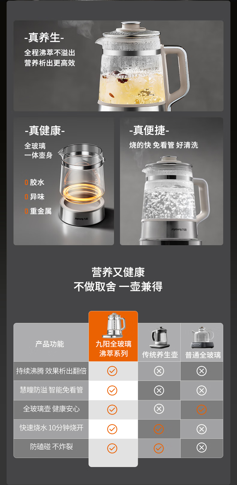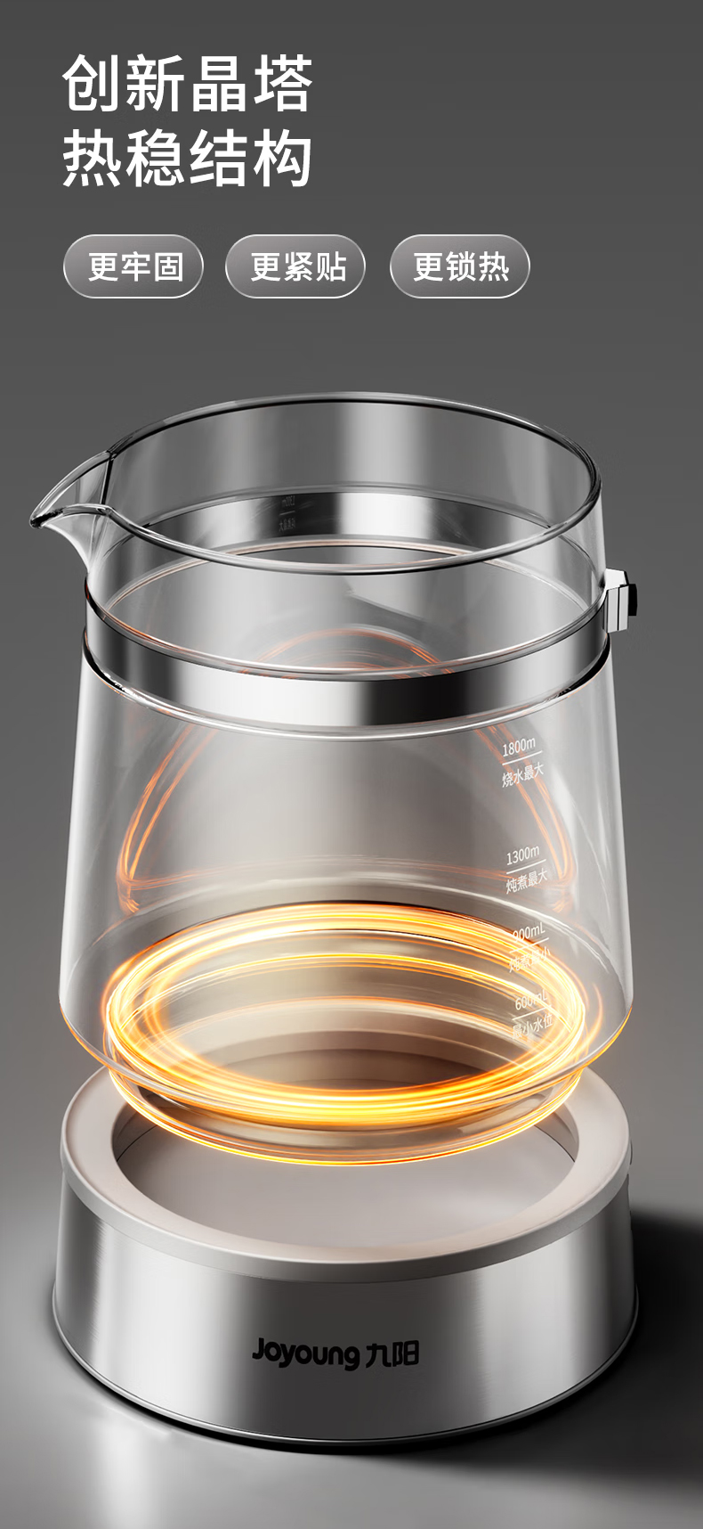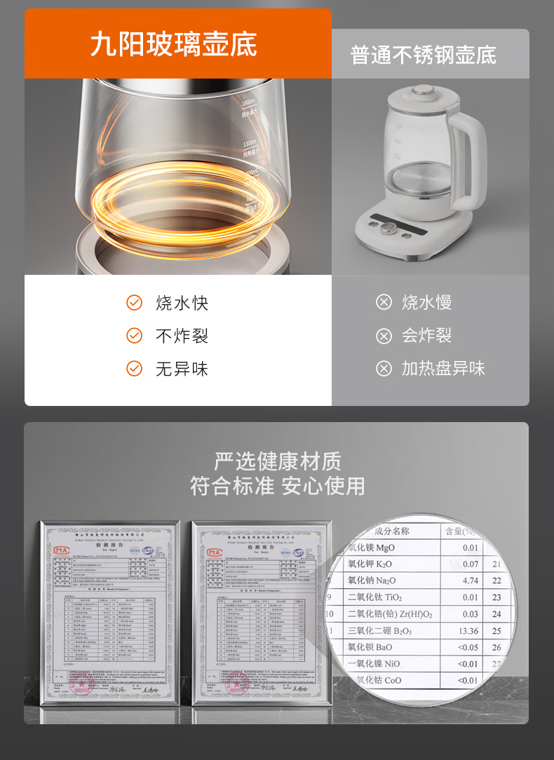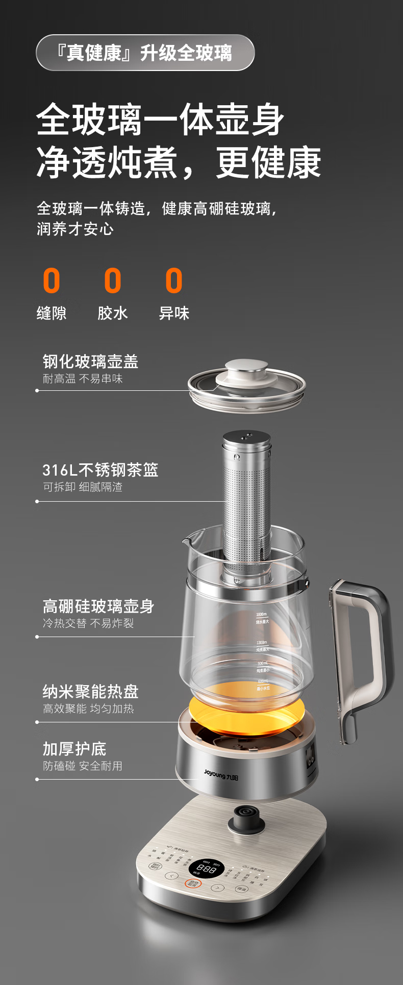九阳(Joyoung) 全玻璃内胆0胶0钢养生壶 18WY20R 1.8L 香槟色(单位:台)