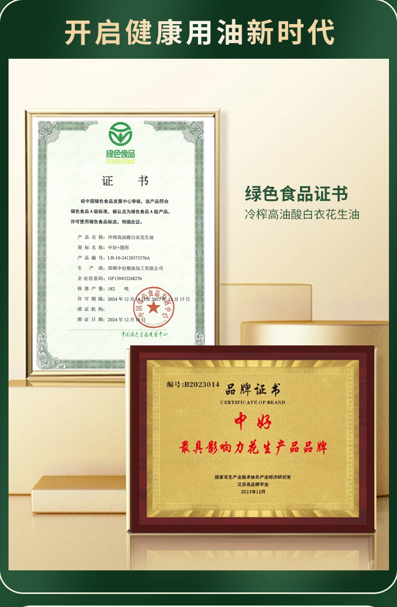 中好 原生花香白衣花生油 冷榨高油酸 4L铁桶装 混色(单位:桶)