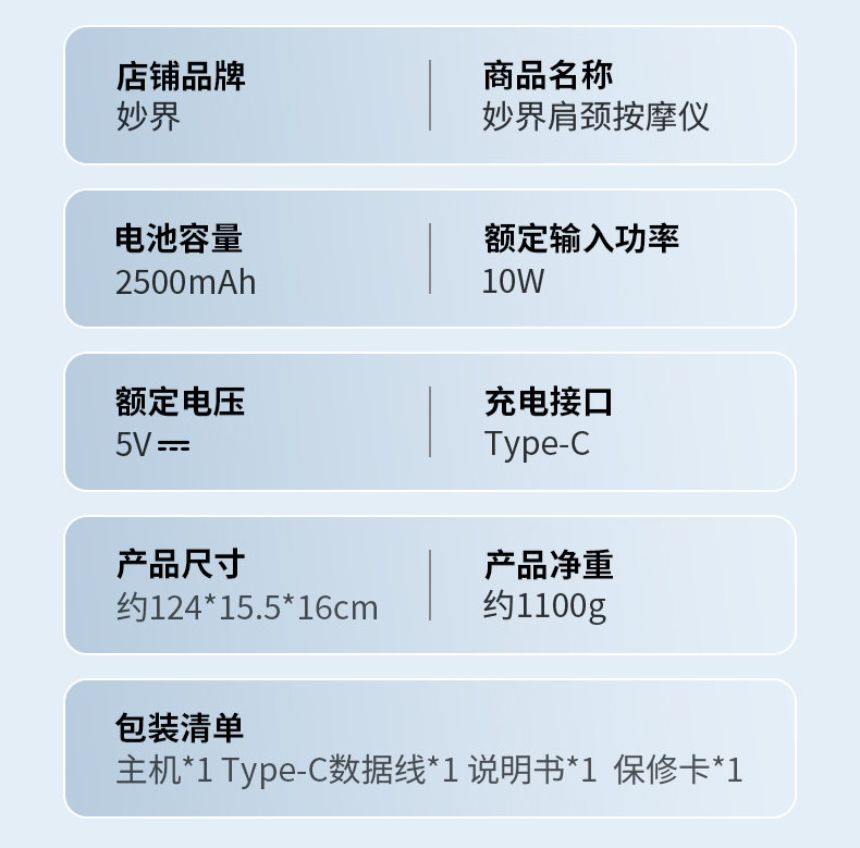 妙界(MIAOJIE) 肩颈按摩仪 R3mini 1110g 天蓝色(单位:件)