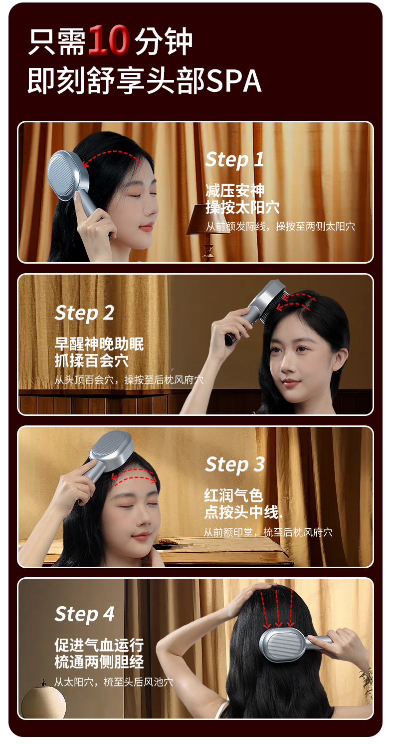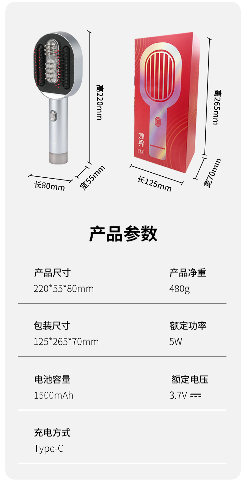 妙界(MIAOJIE) 头皮按摩梳 T3 480g 金色(单位:件)