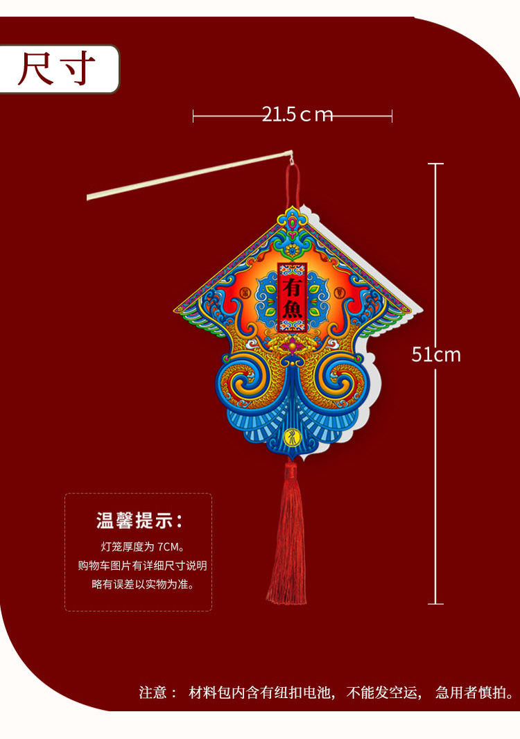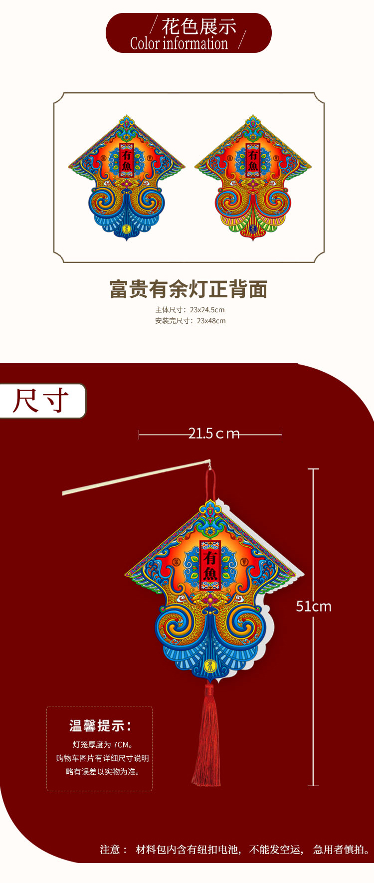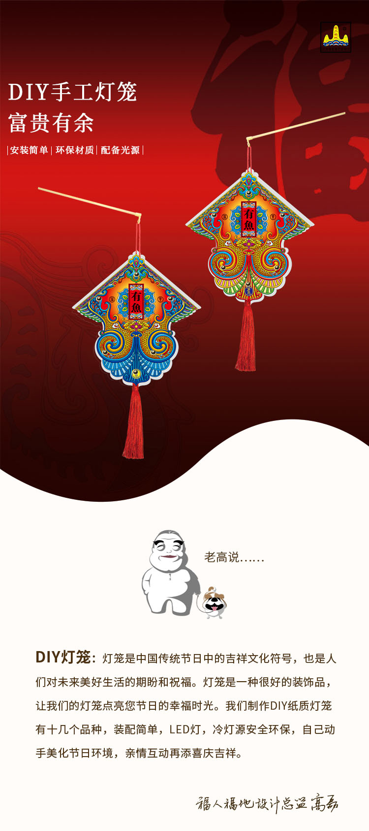 福人福地(FURENFUDI) 儿童礼品创意文创灯笼 DB.23.01.02.02 21.5*51cm 富贵有余灯笼(单位:个)