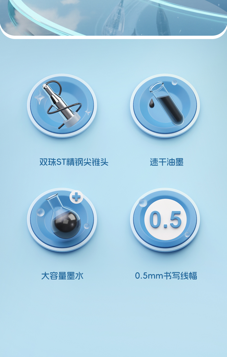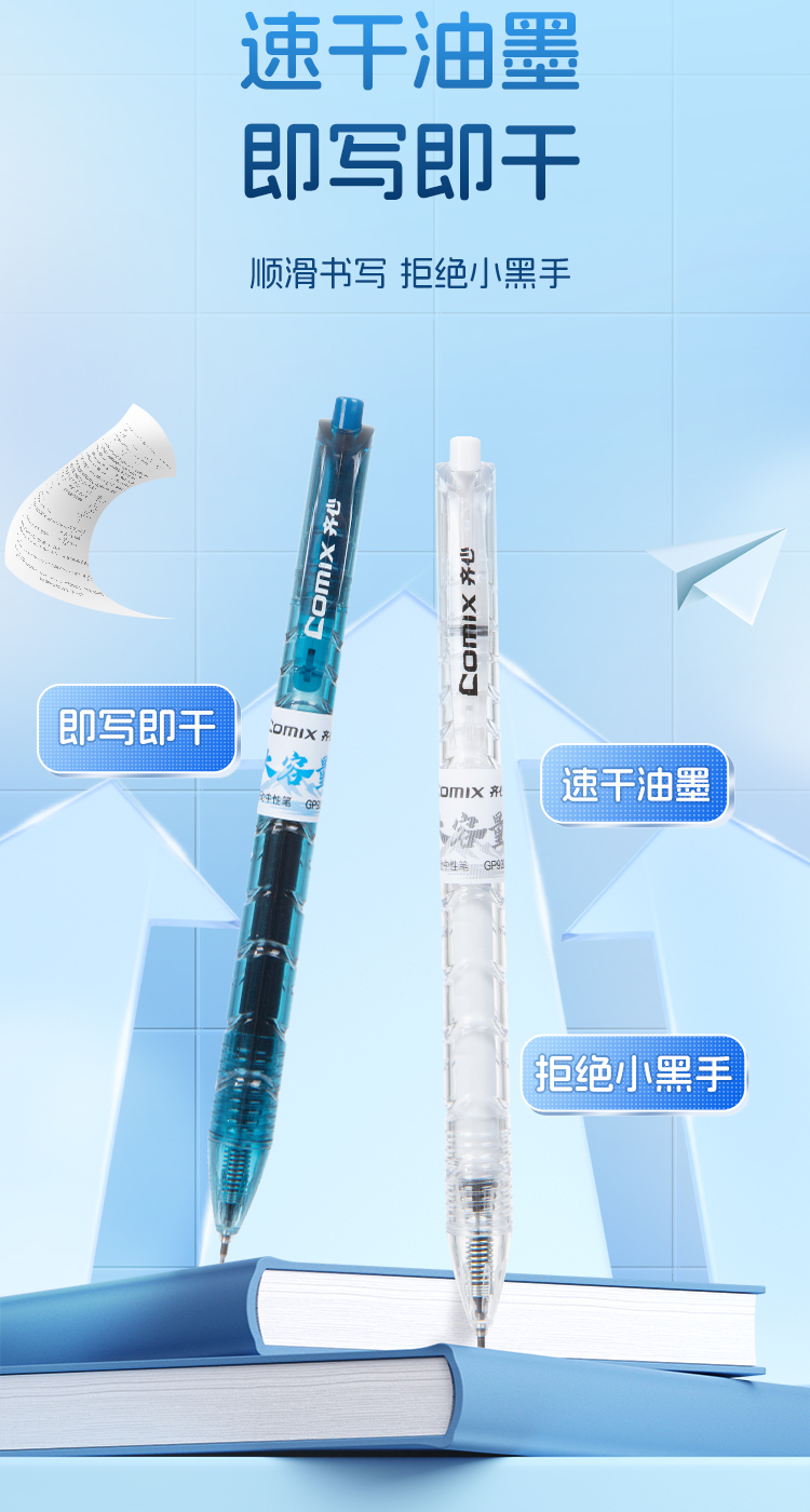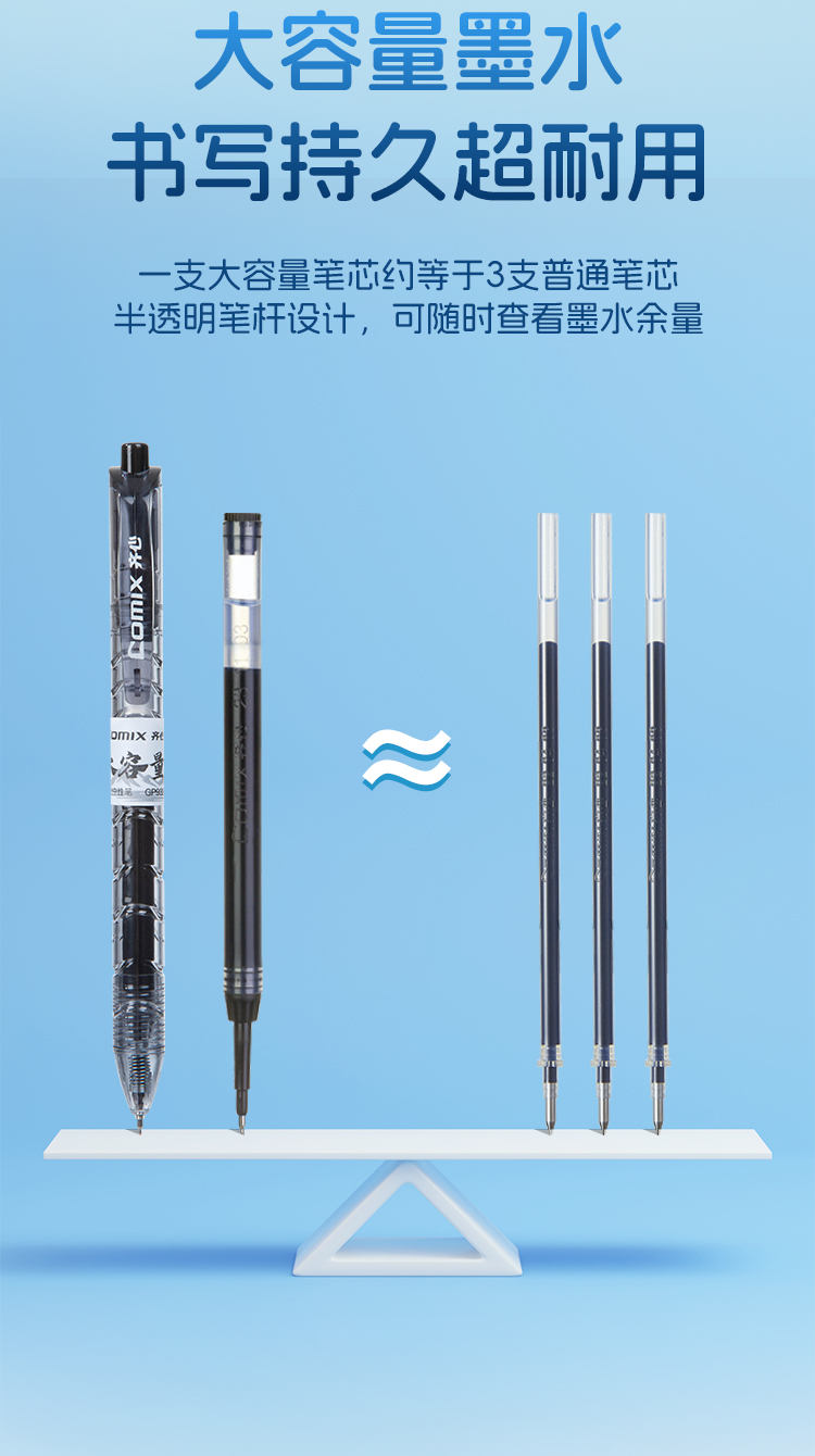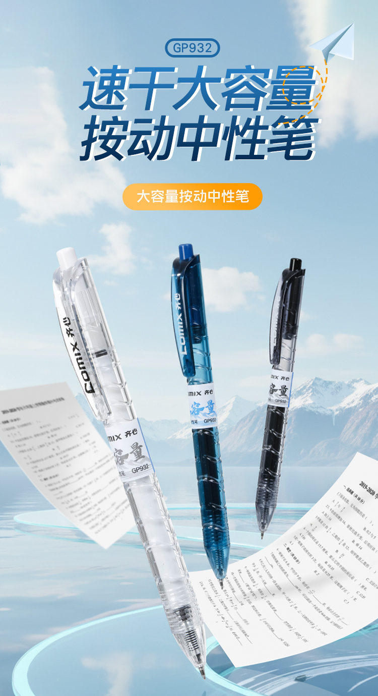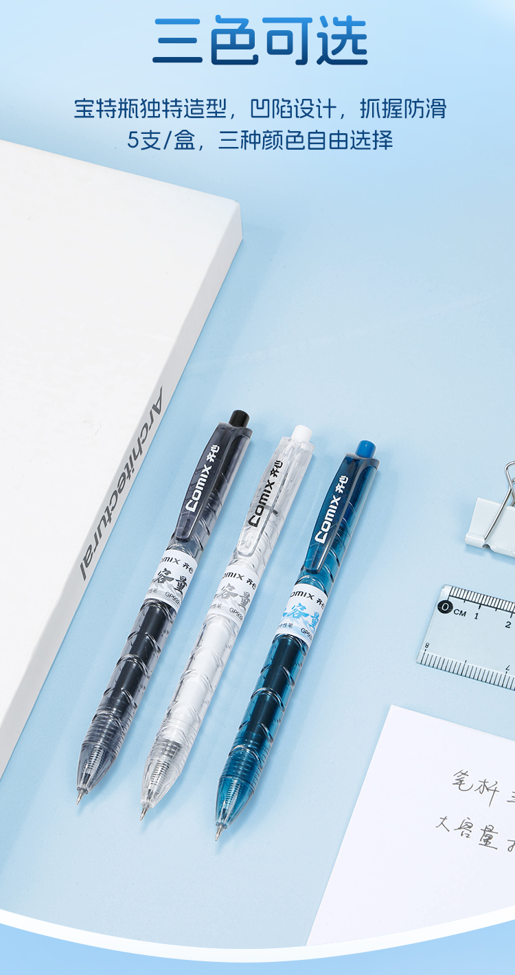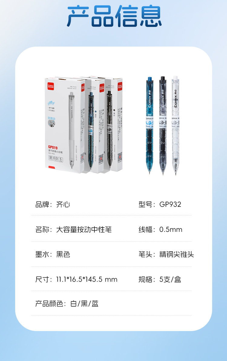 齐心(COMIX) 大容量按动中性笔双珠 GP932 ST头0.5mm*5支 黑色(单位:盒)