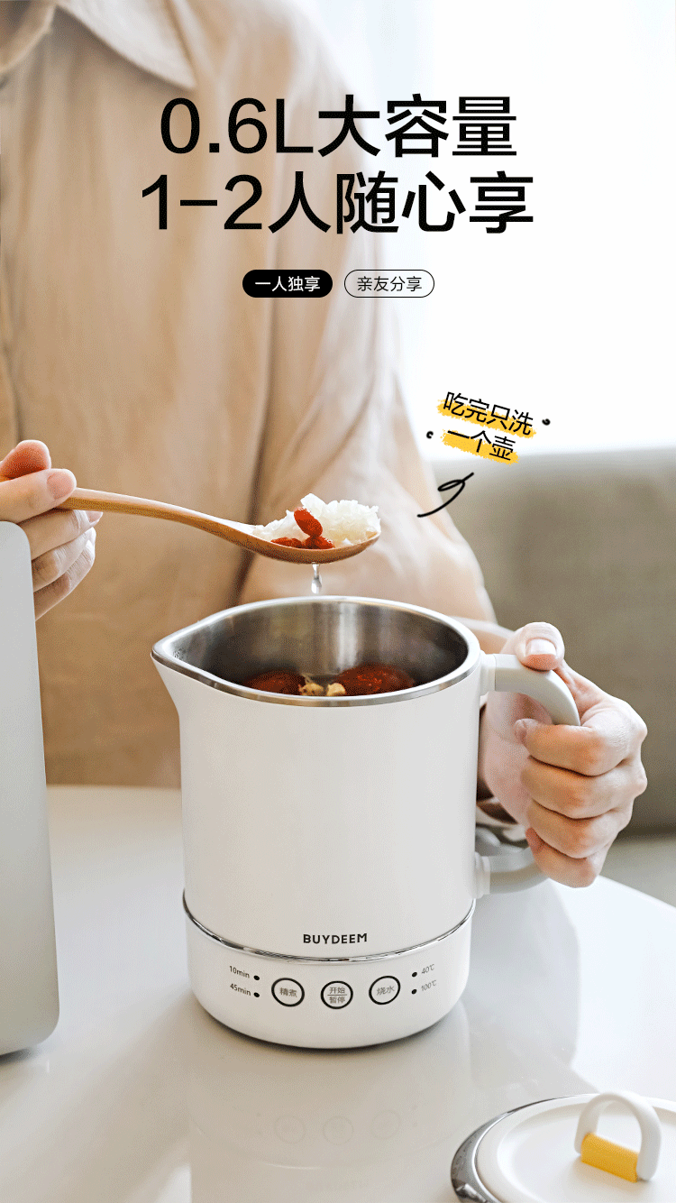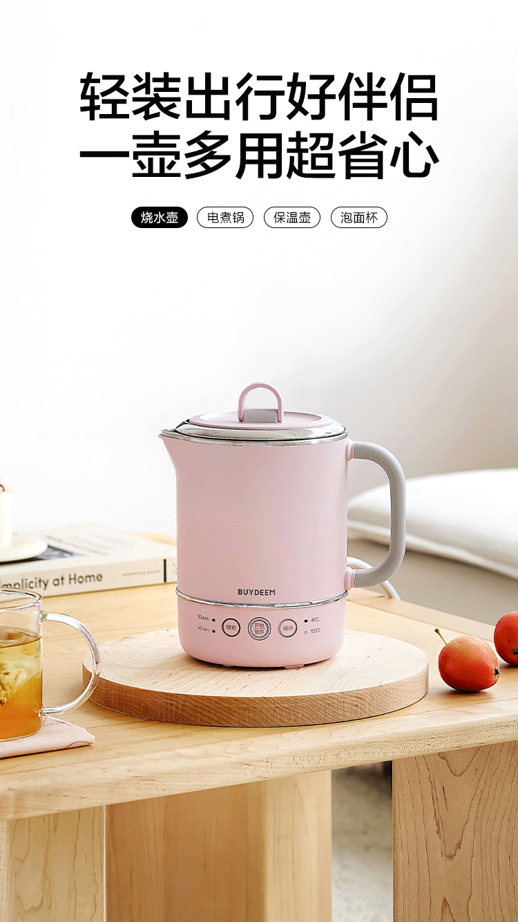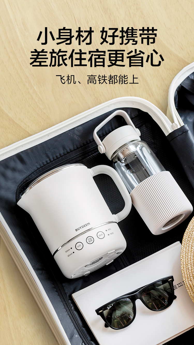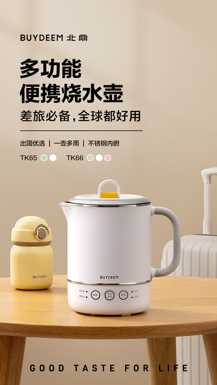 北鼎(Buydeem) 多功能便携式烧水壶出差旅行必备小型电热水壶 TK66 0.6L 本白色(单位:个)