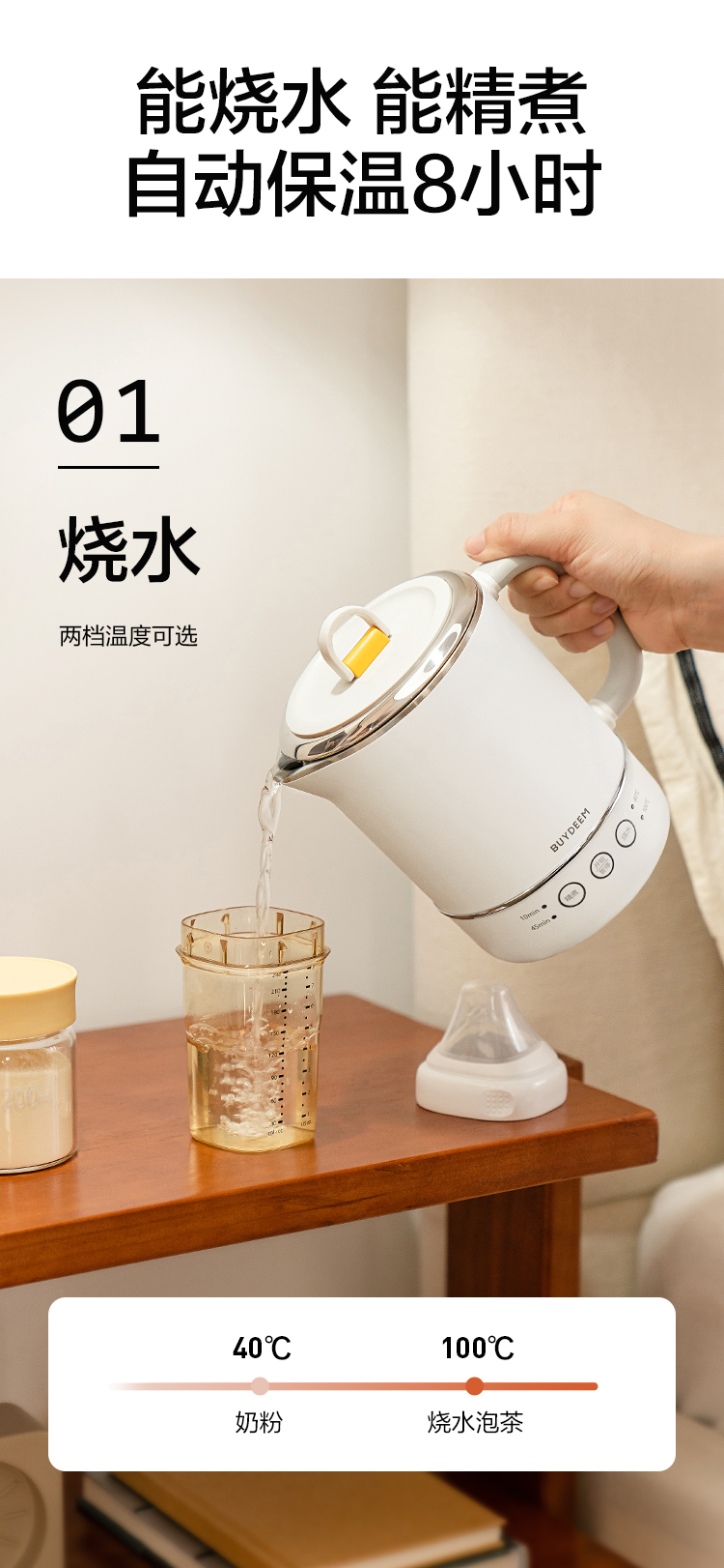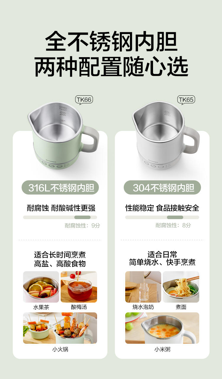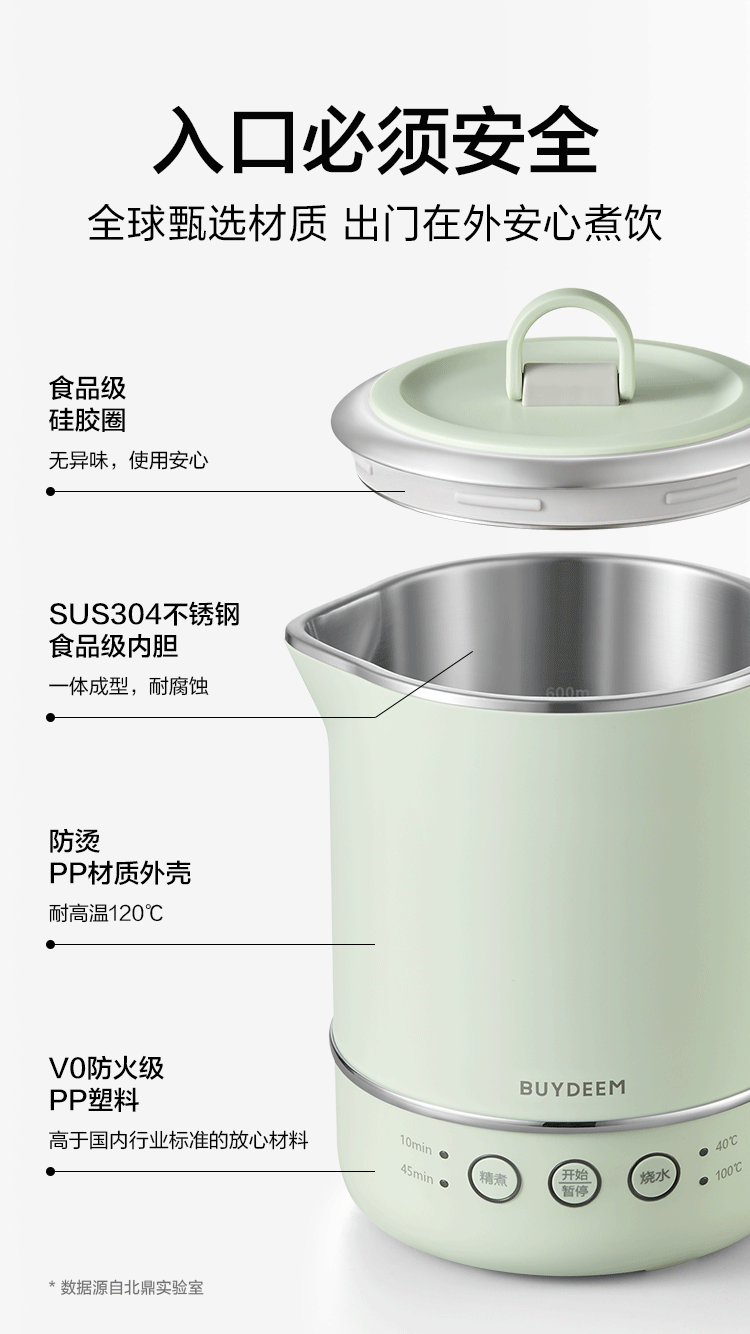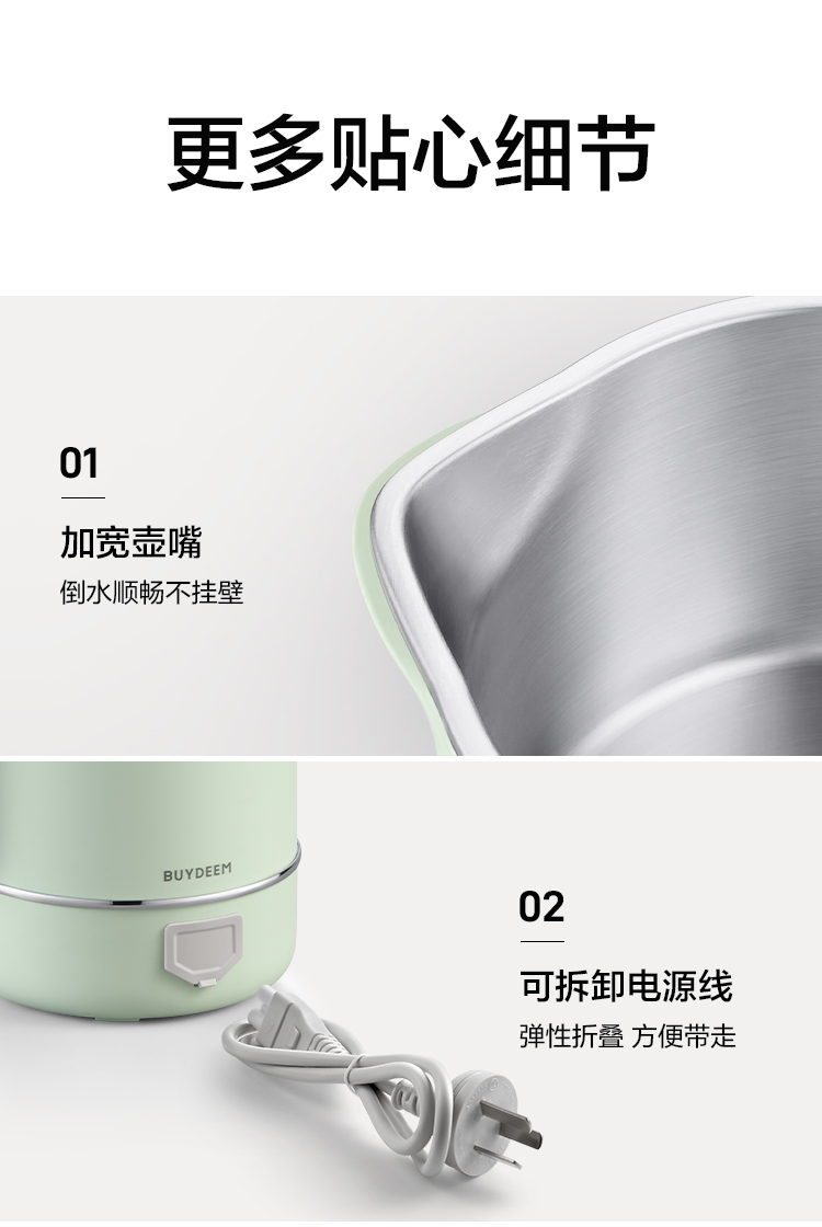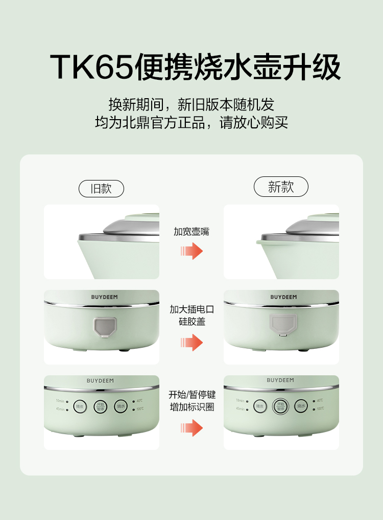 北鼎(Buydeem) 多功能便携式烧水壶出差旅行必备小型电热水壶 TK66 0.6L 本白色(单位:个)