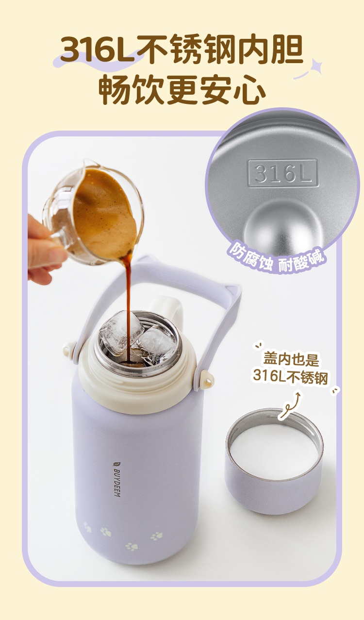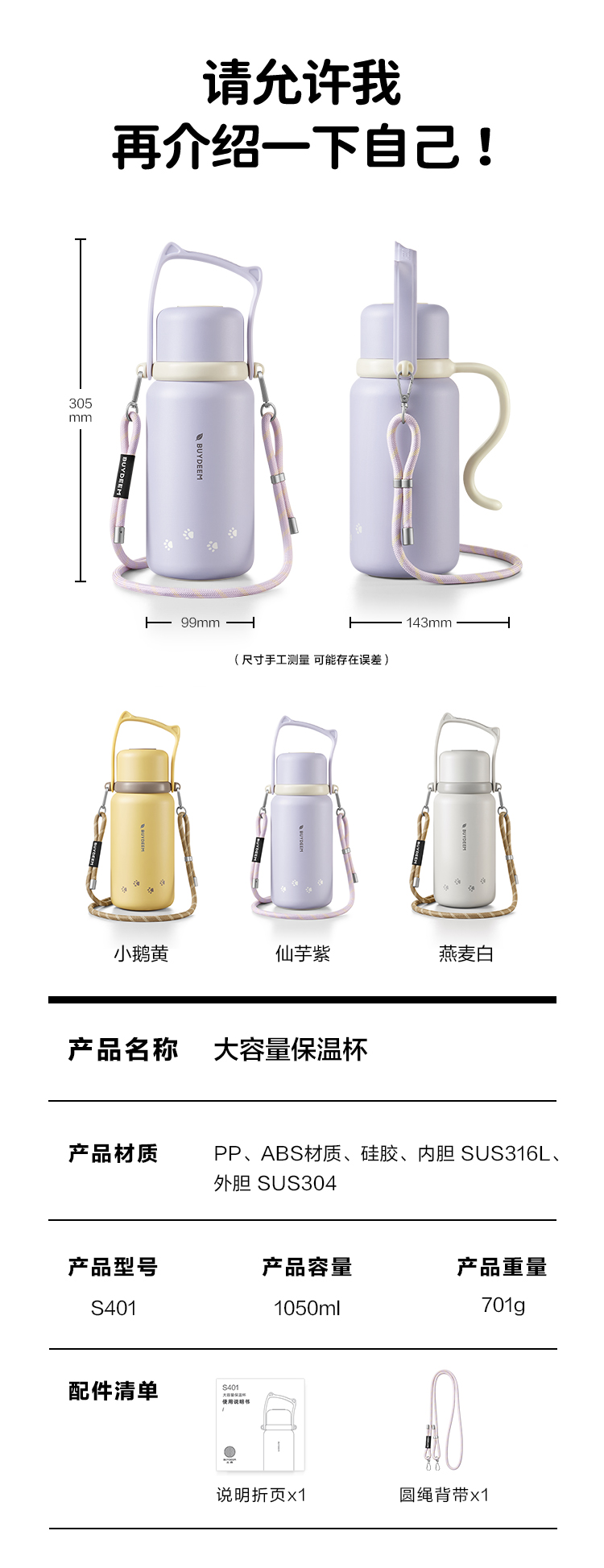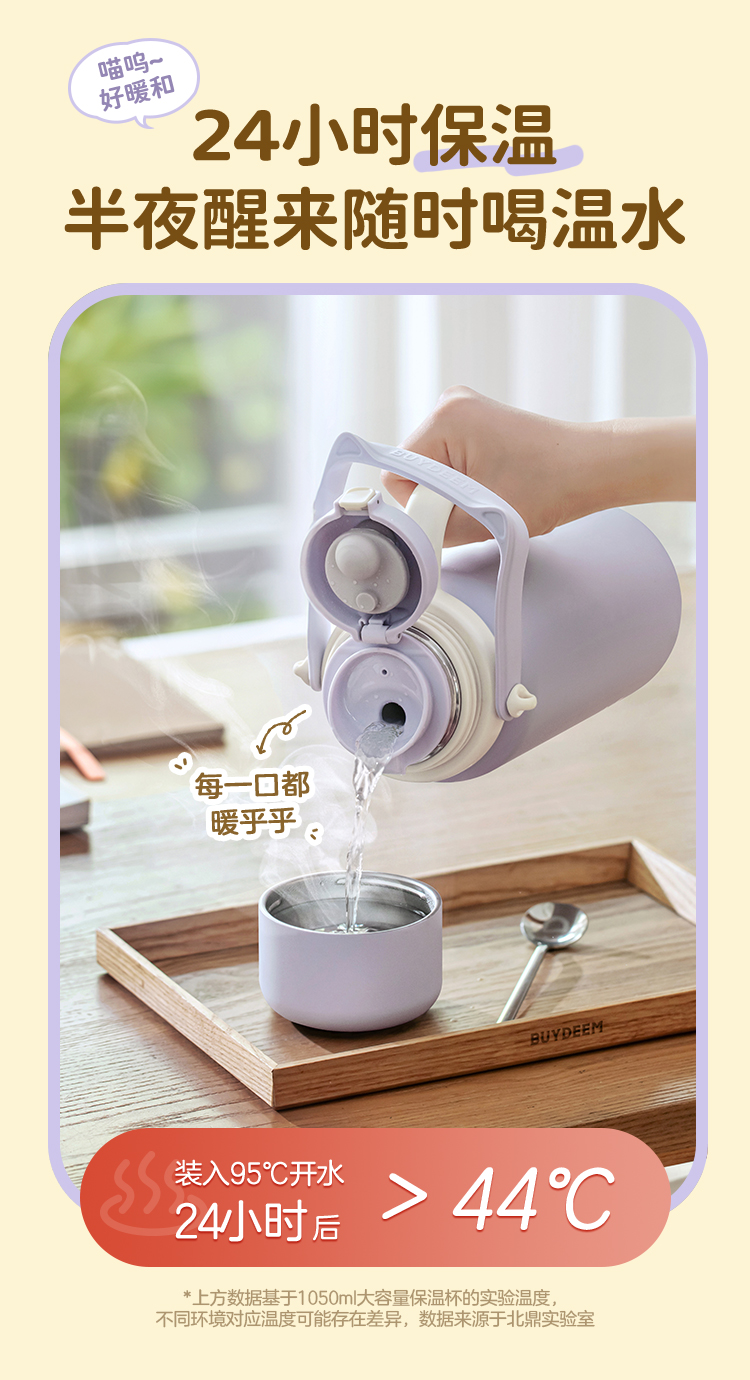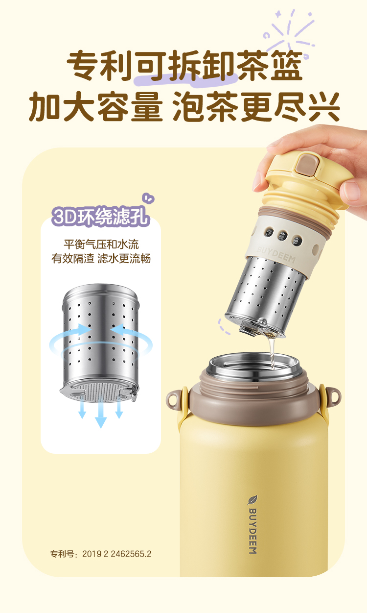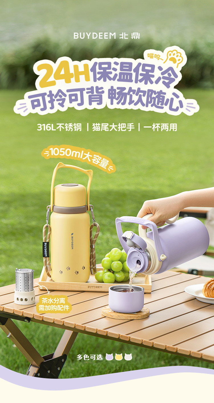 北鼎(Buydeem) 大容量泡茶保温杯实用水杯便携水壶【全家福】 S401 1050ml 象牙色(单位:个)