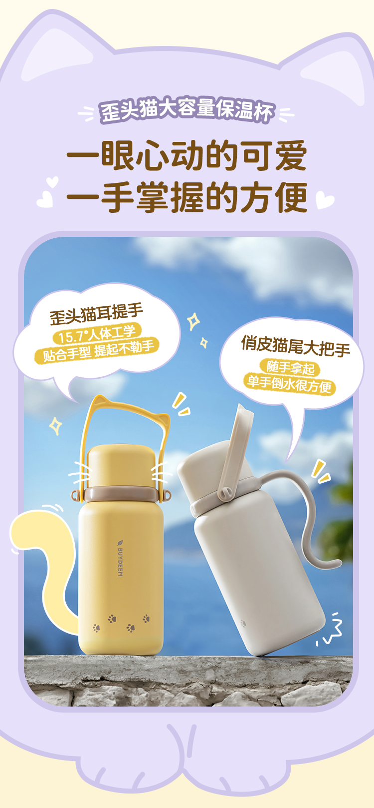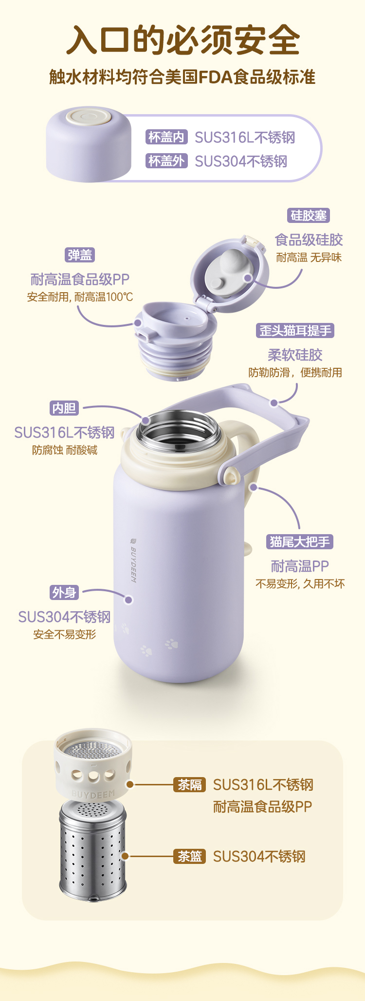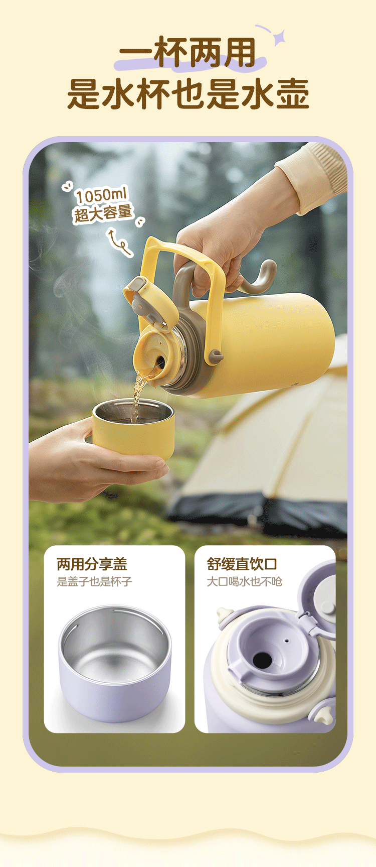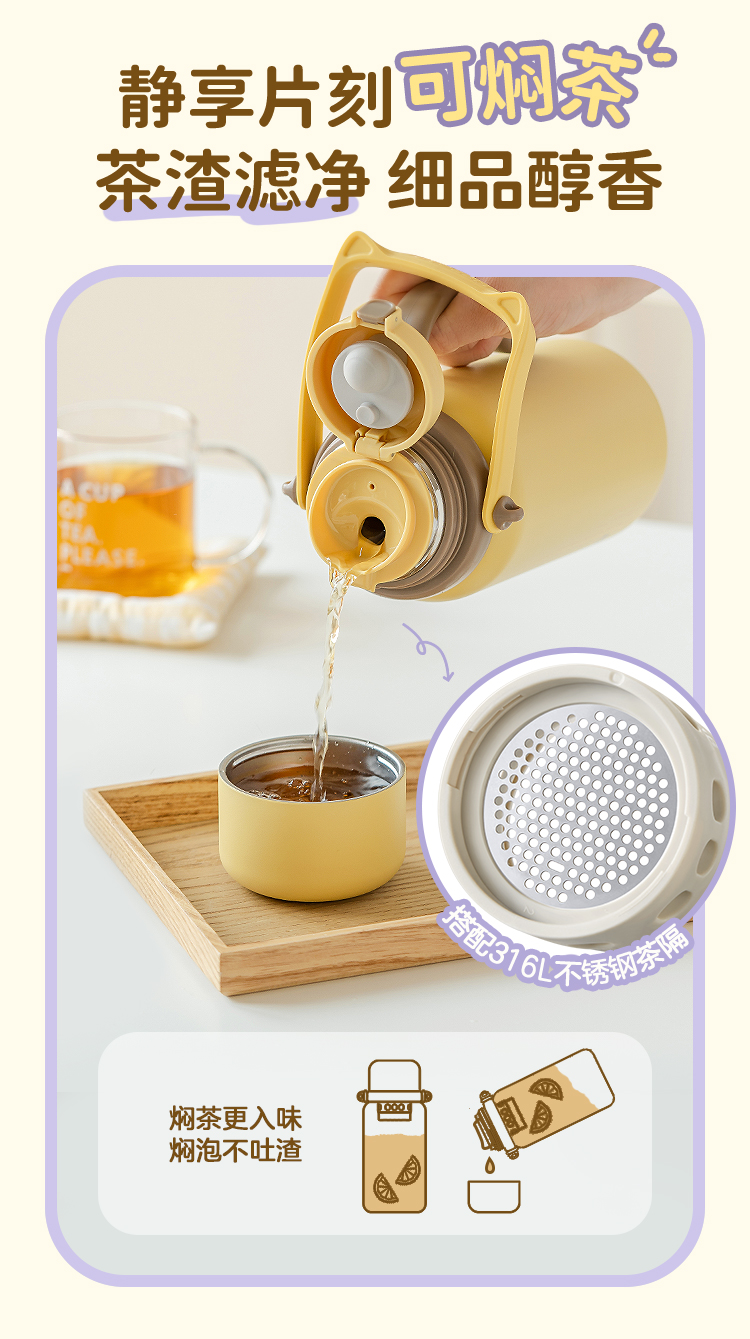 北鼎(Buydeem) 大容量泡茶保温杯实用水杯便携水壶【全家福】 S401 1050ml 象牙色(单位:个)