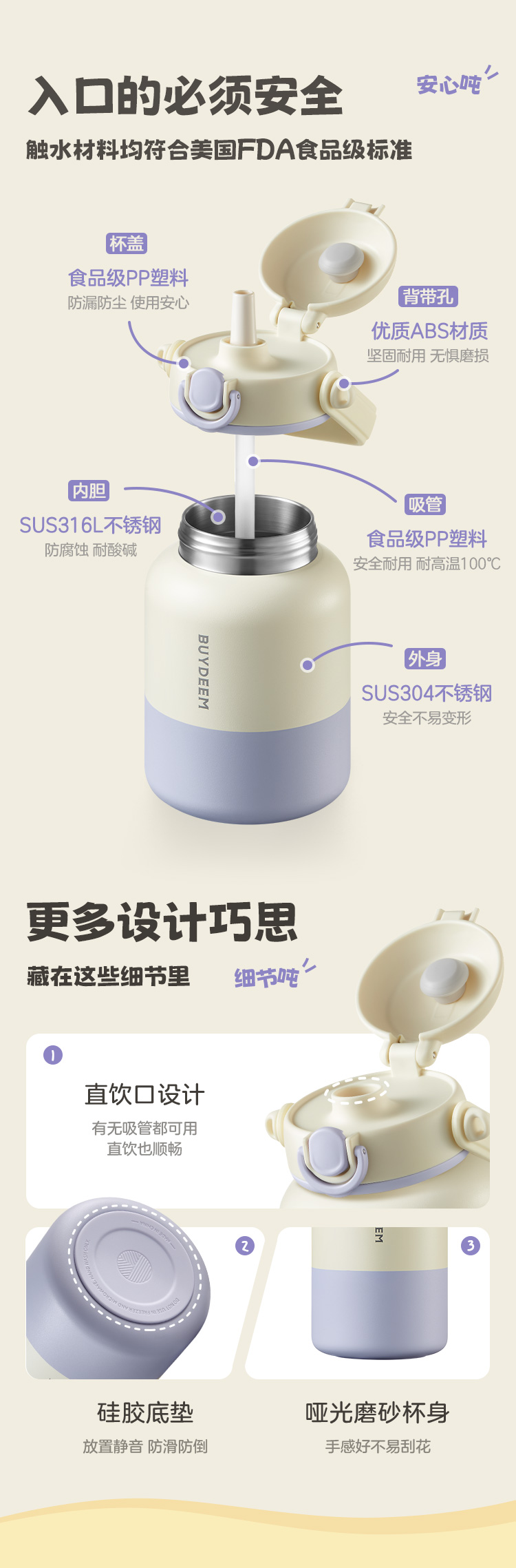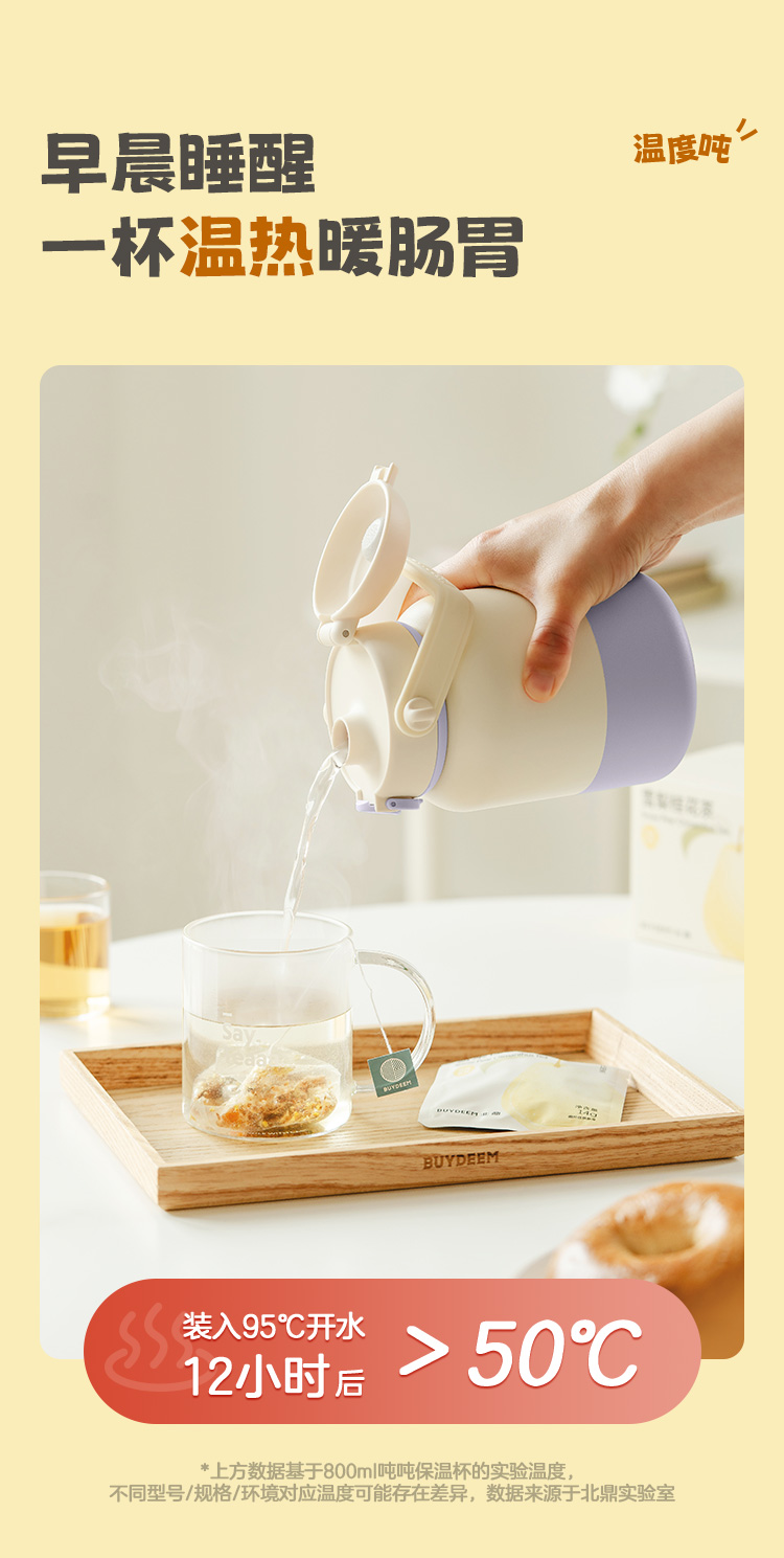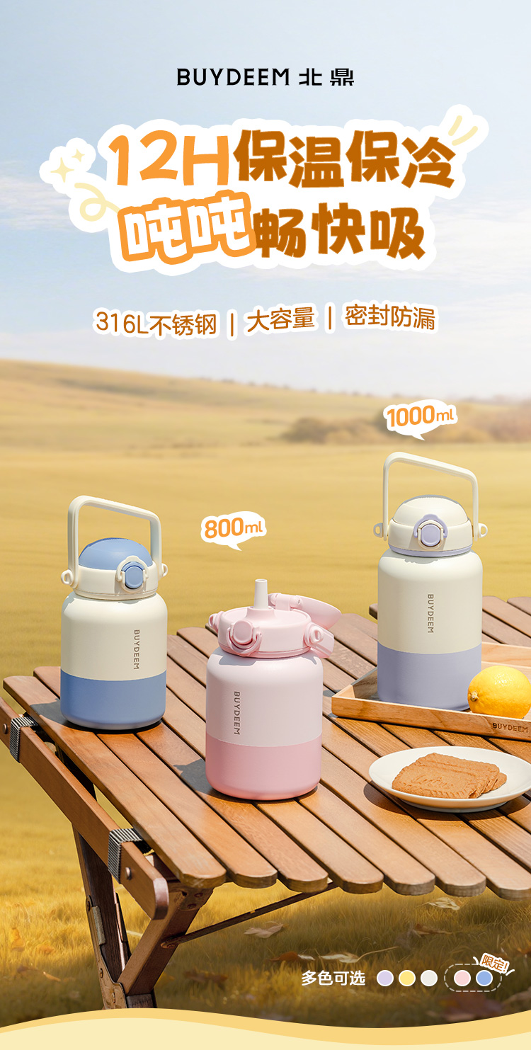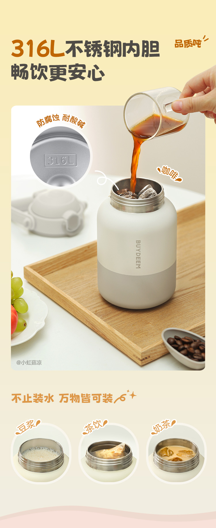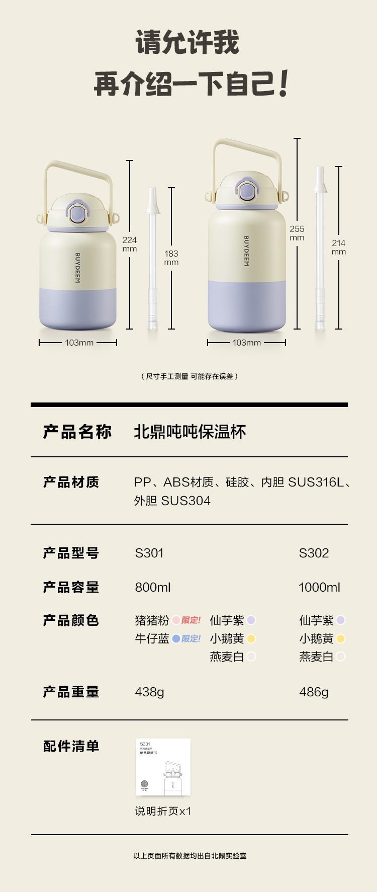 北鼎(Buydeem) 吨吨保温杯大容量高颜值保温杯便携水壶 S301/A1 800ml 小鹅黄(单位:个)