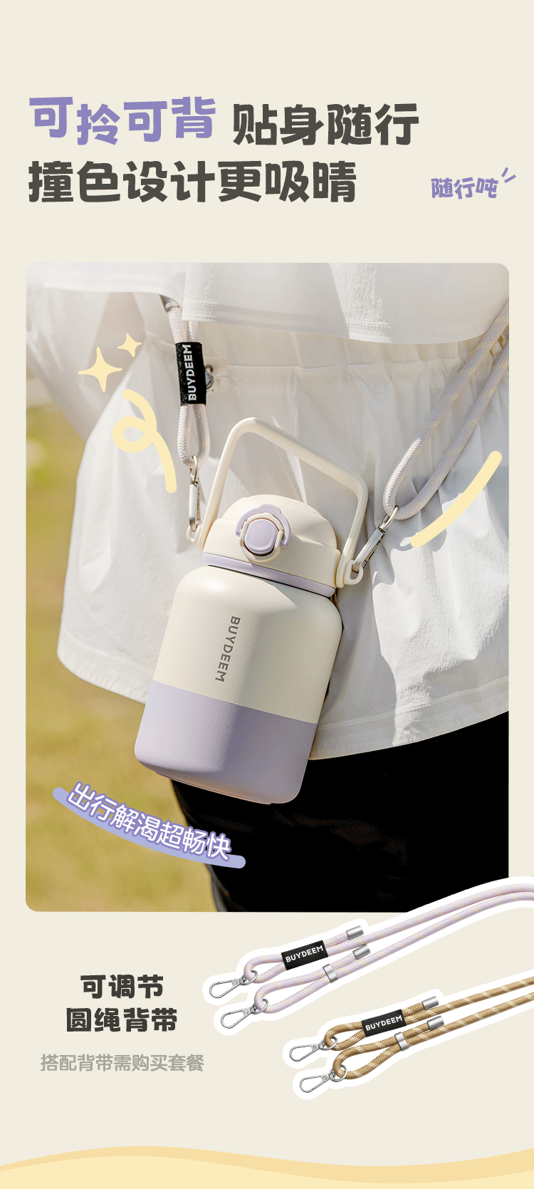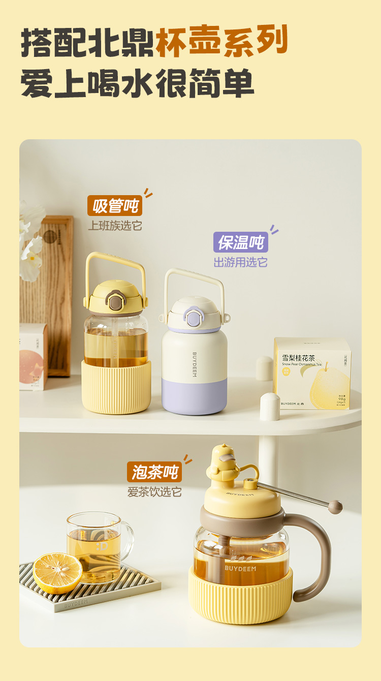 北鼎(Buydeem) 吨吨保温杯大容量高颜值保温杯便携水壶 S302/A4 1000ml 仙芋紫(单位:个)