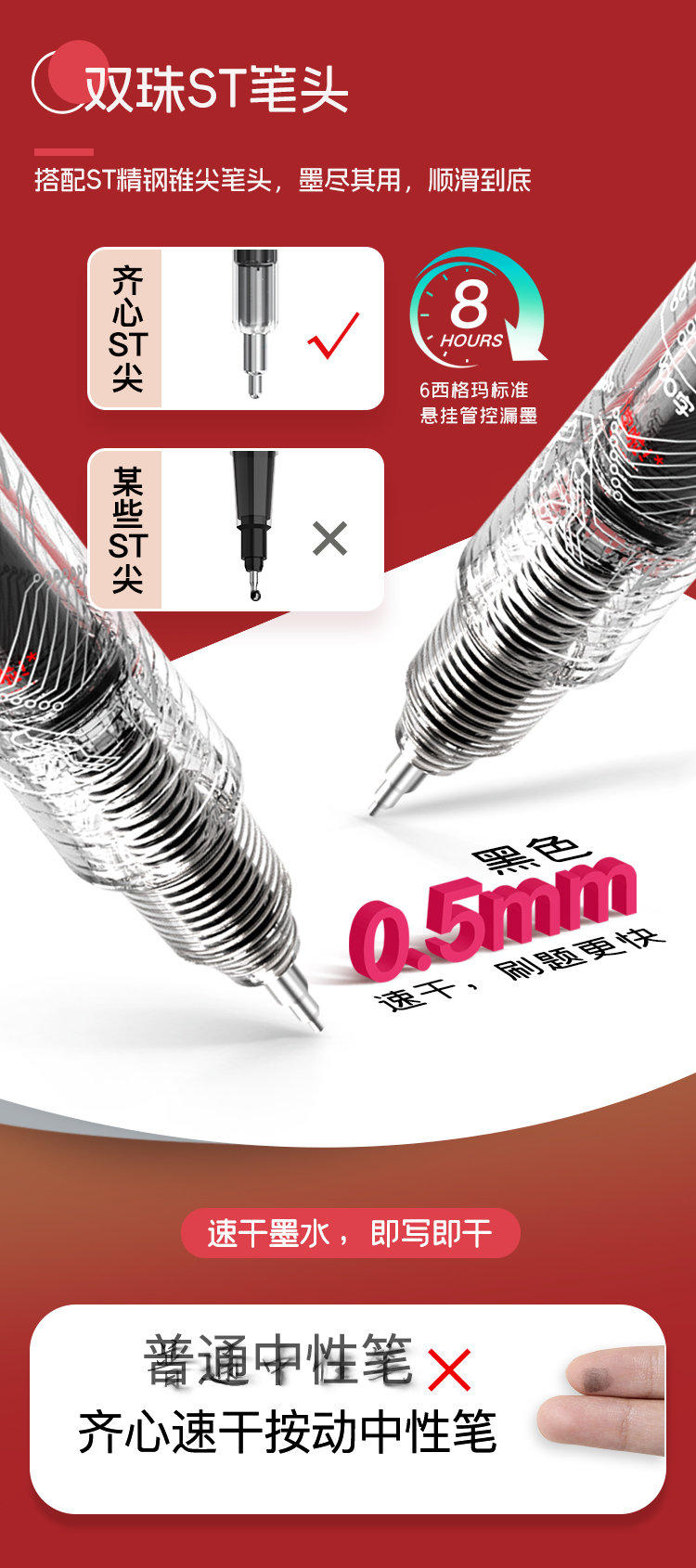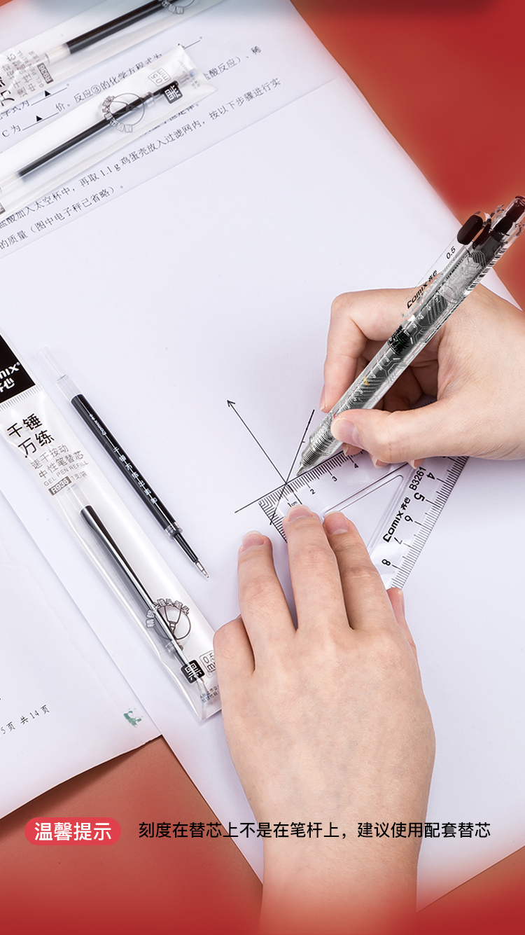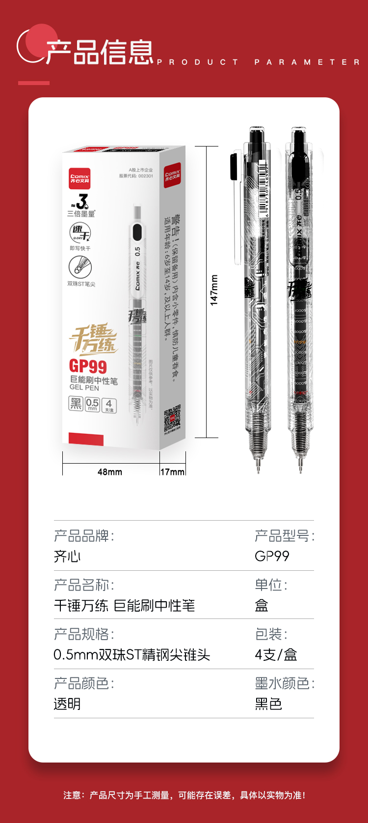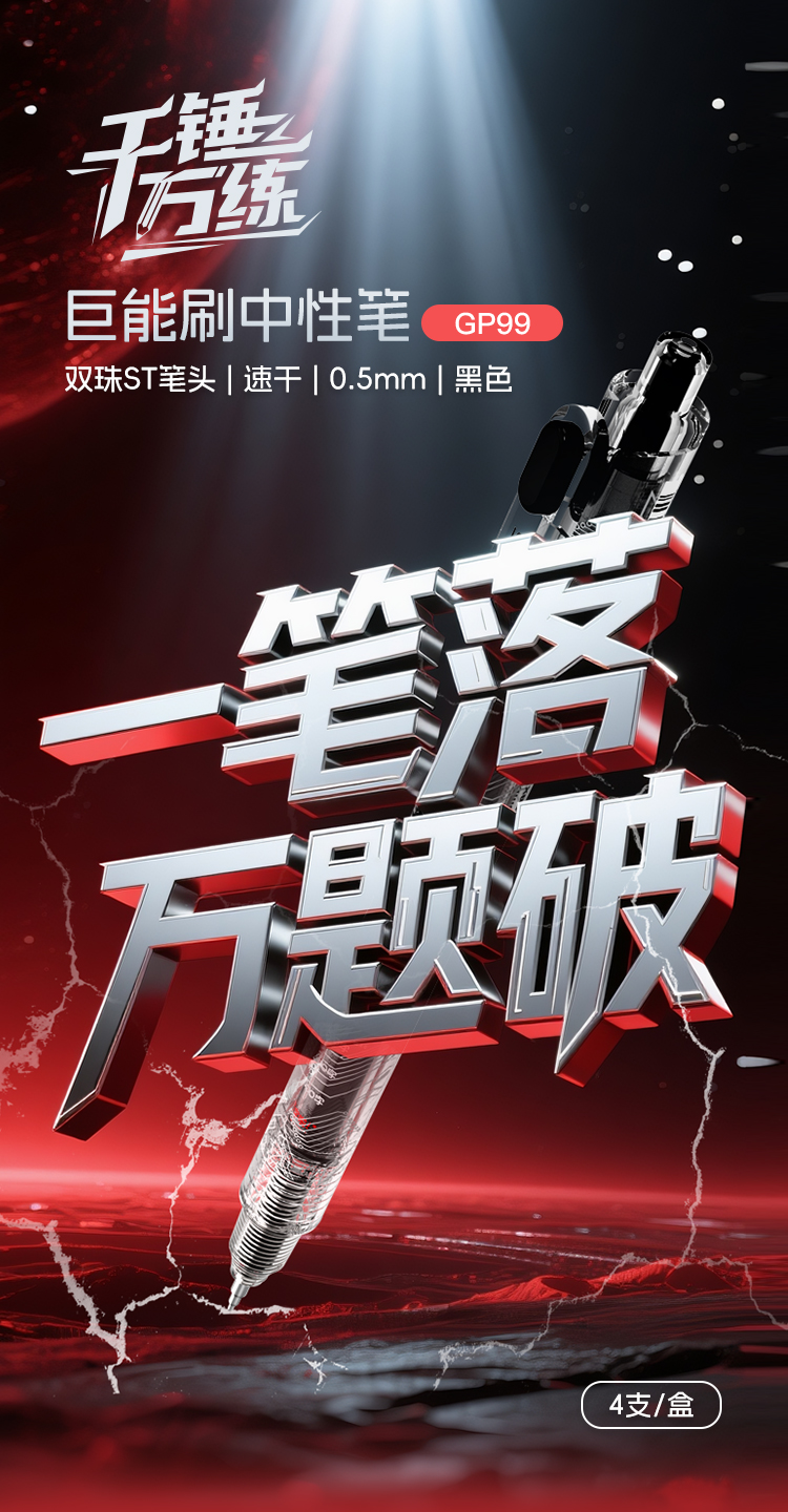 齐心(COMIX) 千锤万练巨能刷中性笔双珠 GP99 ST头0.5mm4支 黑色(单位:盒)