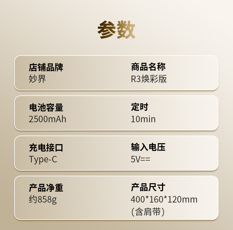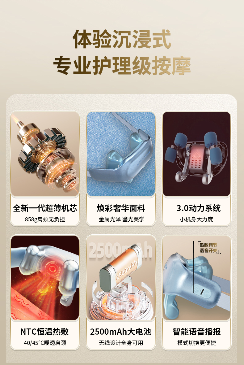 妙界(MIAOJIE) 肩颈按摩仪 r3幻彩版 858g 鎏光金(单位:件)