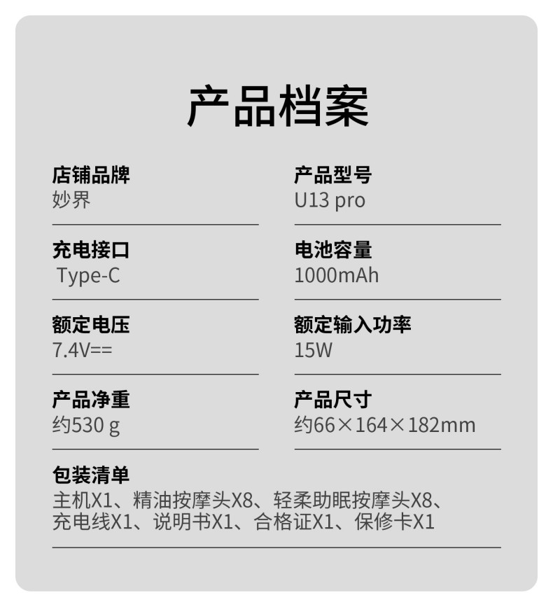 妙界(MIAOJIE) U型颈部按摩仪 U13pro 530g 白色(单位:件)