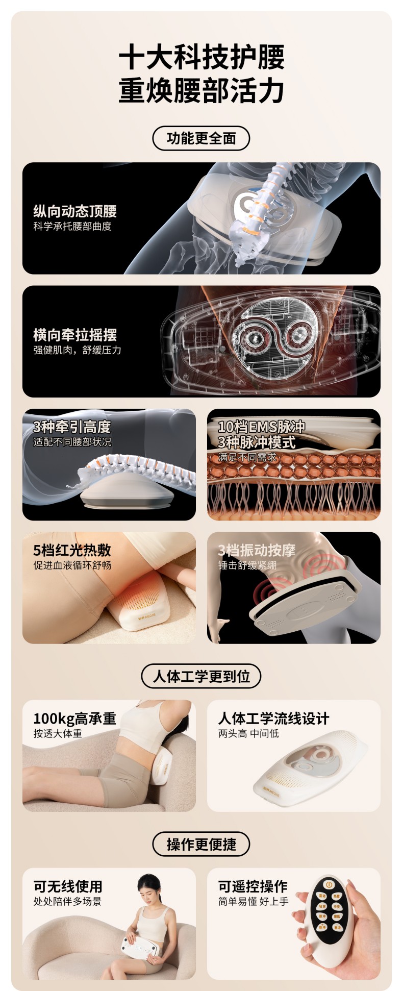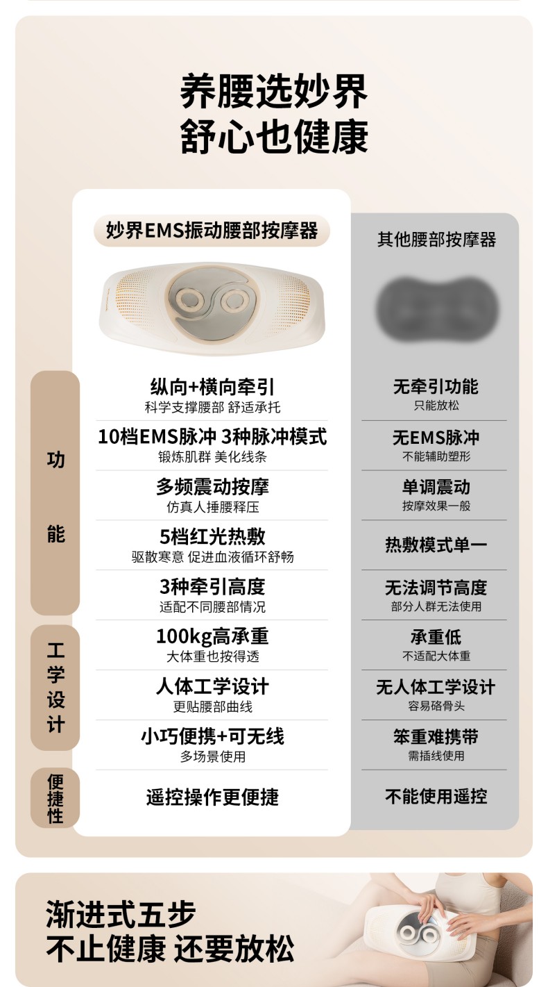 妙界(MIAOJIE) 腰部按摩仪 ME05 1.9kg 米白色(单位:件)