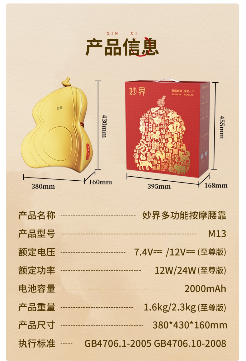 妙界(MIAOJIE) 腰部按摩器 M13至尊版 2.3kg 缃叶黄(单位:件)