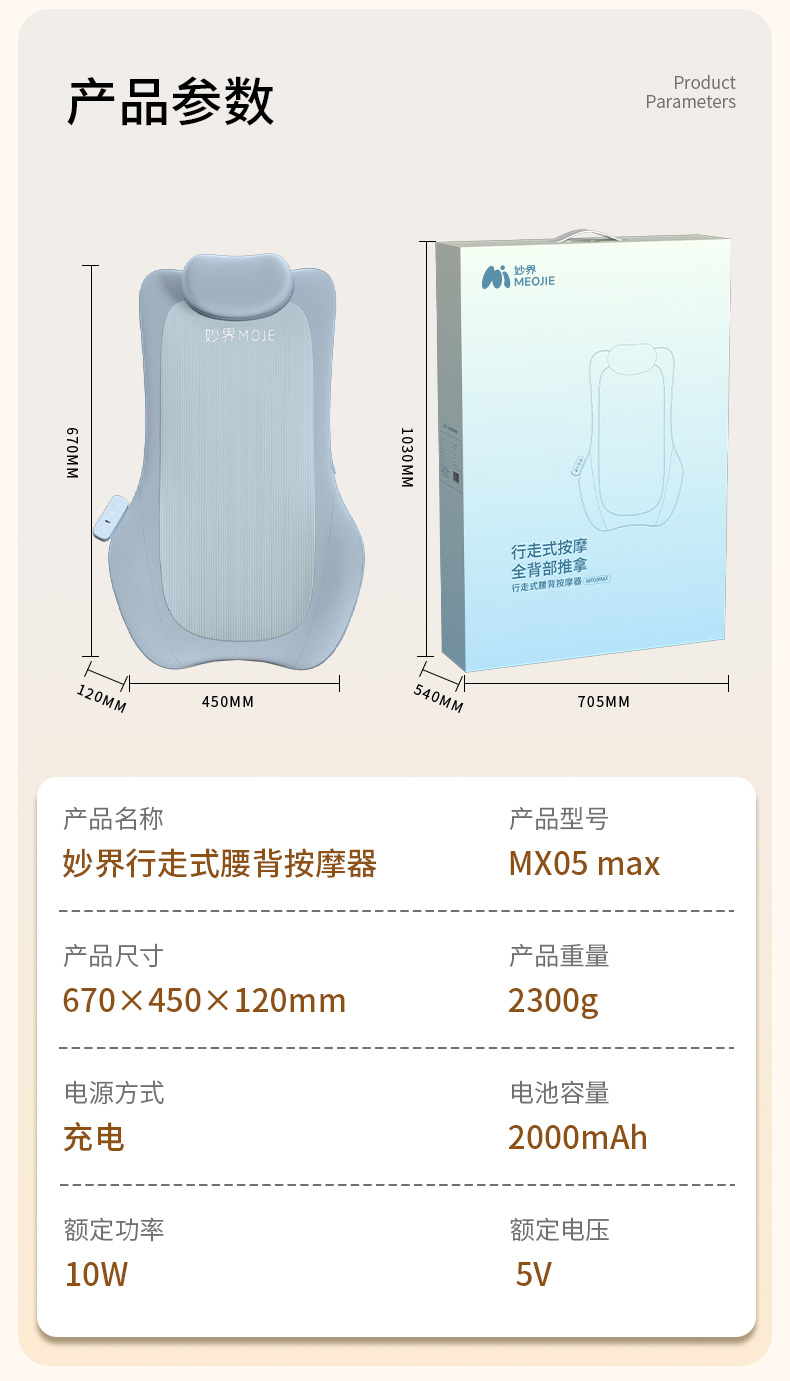 妙界(MIAOJIE) 行走式腰背按摩器 MX05MAX 2.3kg 蓝色(单位:件)
