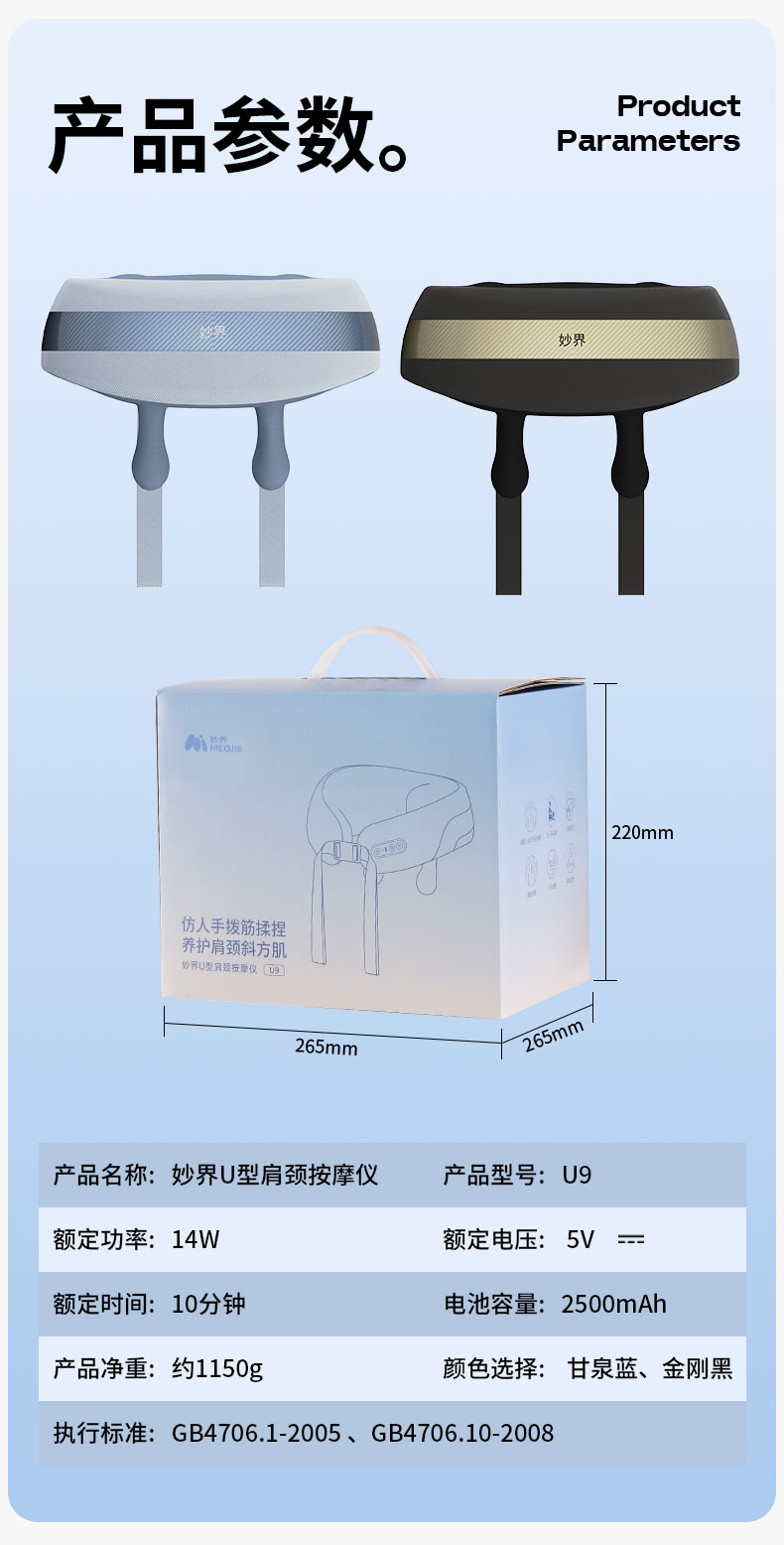 妙界(MIAOJIE) 肩颈按摩仪 U9 1150g 甘泉蓝(单位:件)