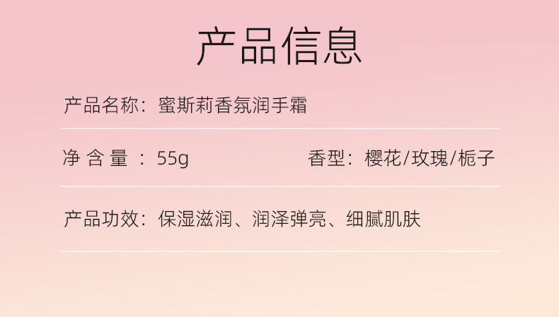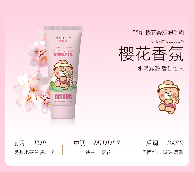 蜜斯莉 MISS LILLY 蜜斯莉香氛润手霜(比鲁斯联名限量款) 樱花香氛 55g 粉色(单位:支)