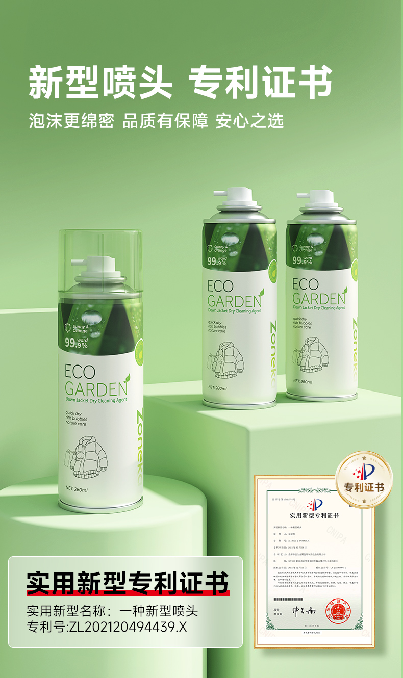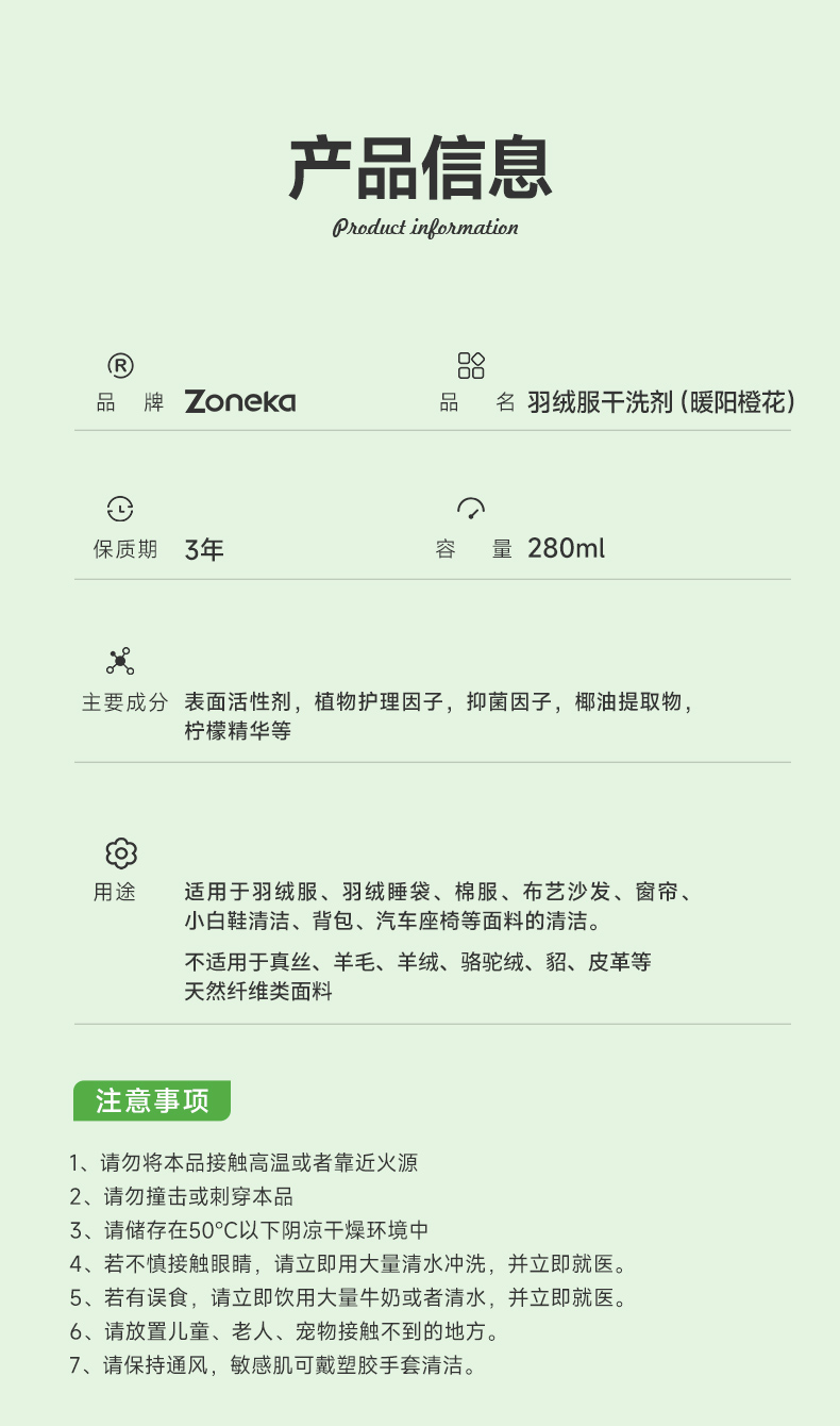 Zoneka 羽绒服清洁剂 去污 280ml 绿色(单位:瓶)
