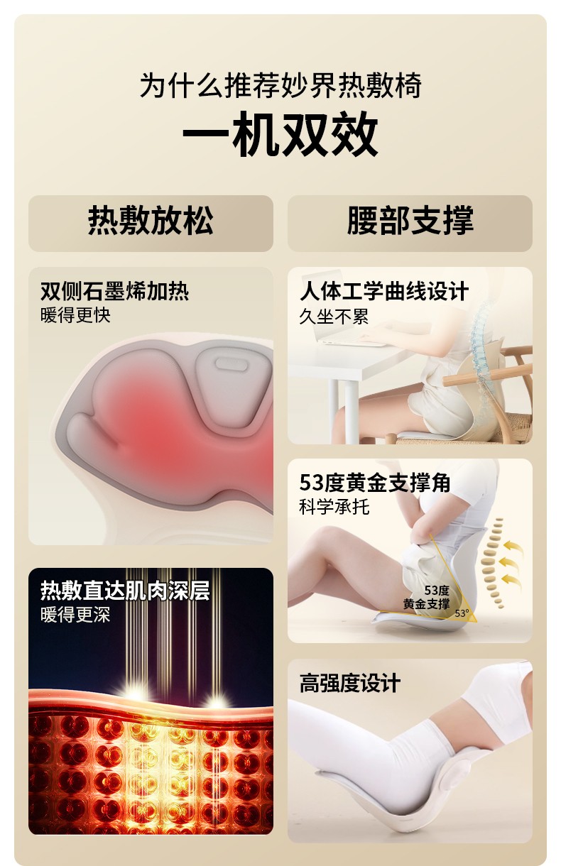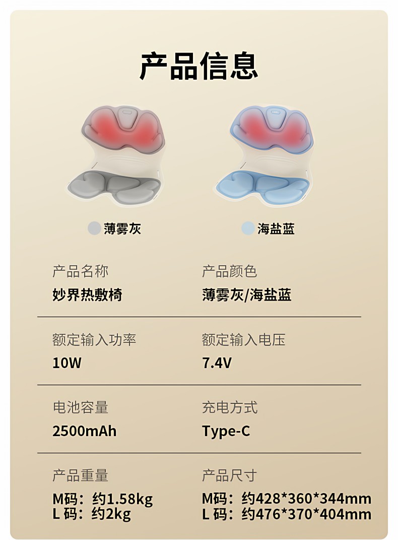 妙界(MIAOJIE) 热敷护腰坐姿椅 MH02 2kg L 海盐蓝(单位:件)