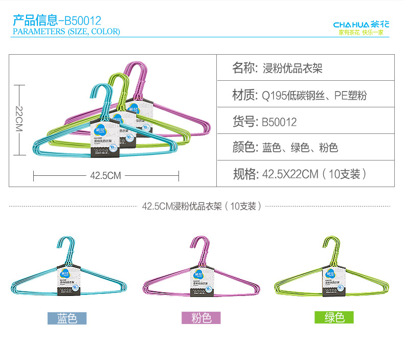 茶花浸粉优品衣架42.5cm(10支)(两份装)B50012*2 随机 随机