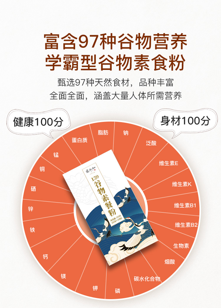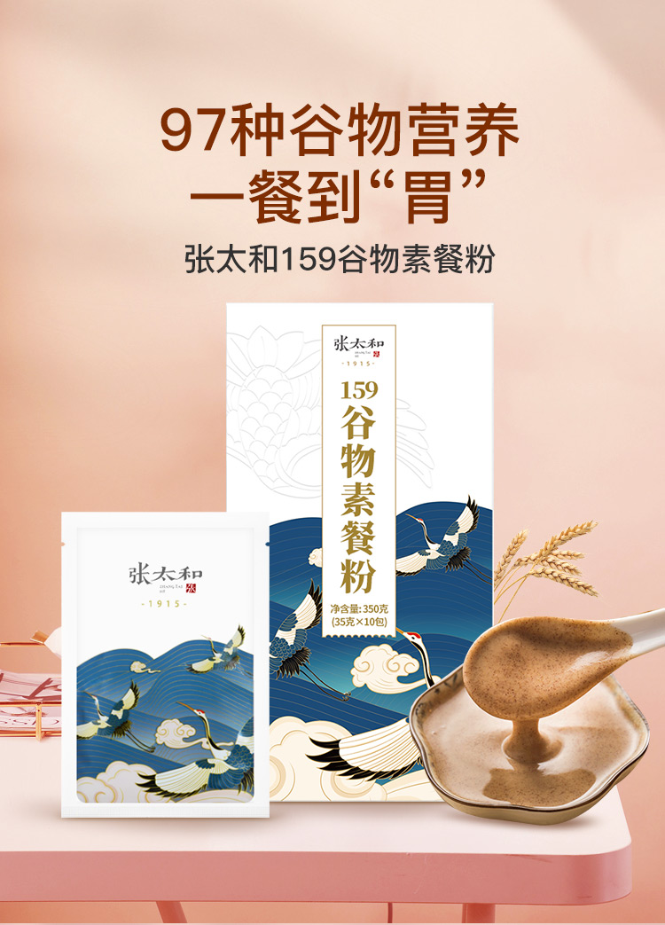 张太和 素食全餐159代餐粉 350g 饱腹辟谷餐五谷杂粮粗粮盒装 1盒装35g*10包 白色