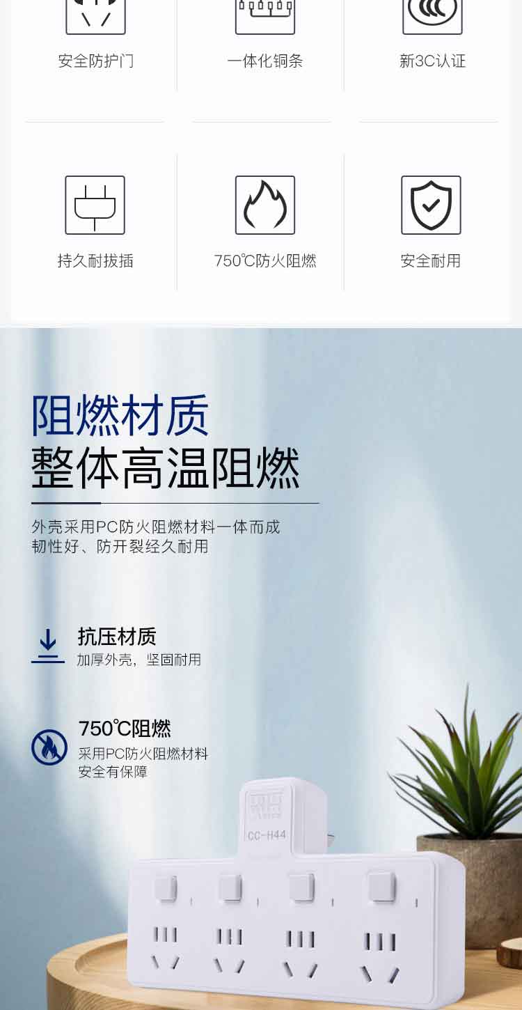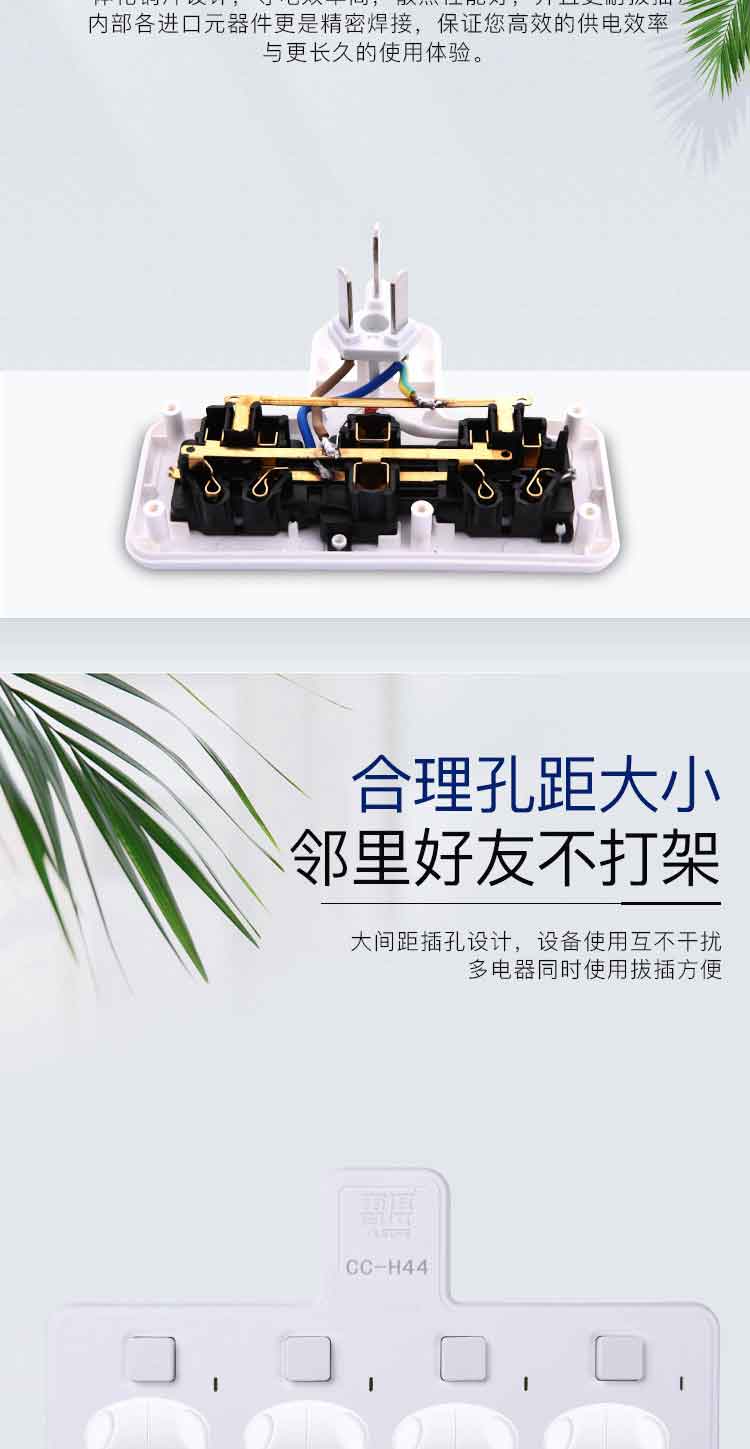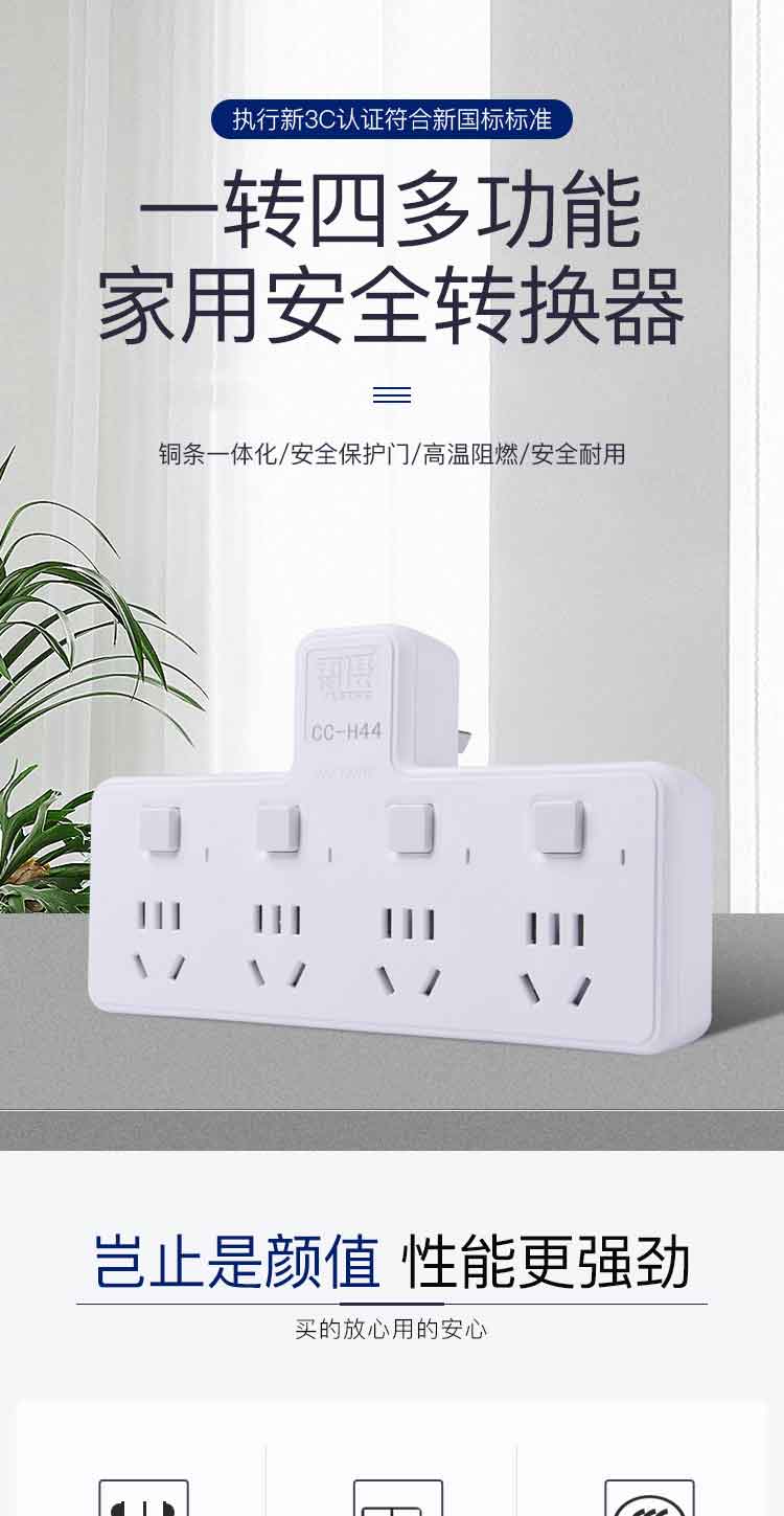 雷摄LEISE 插座转换器/一转多插座/无线转换插座/电源转换器/4位分控插座CC-H44 个 白色