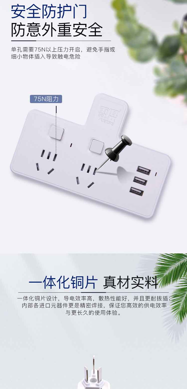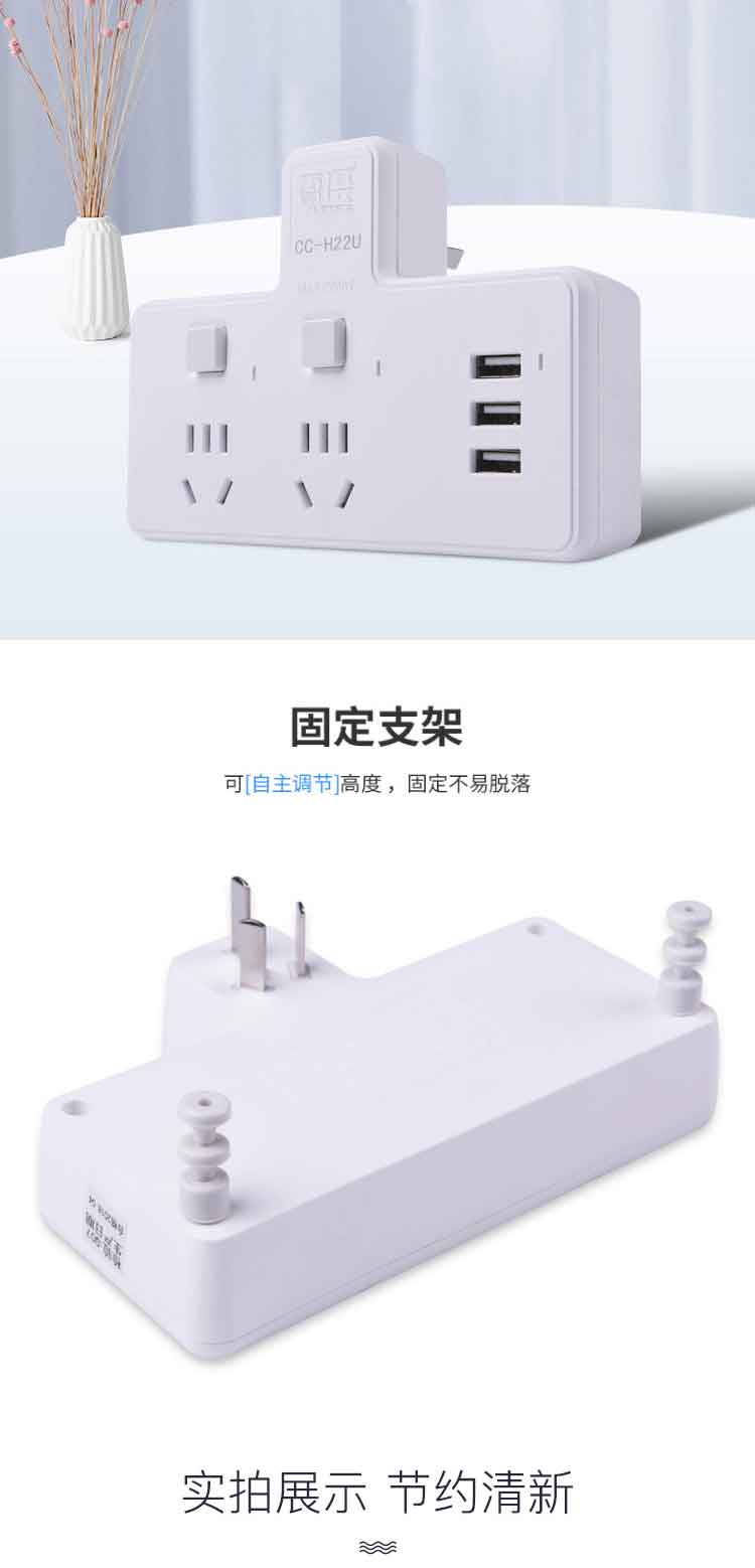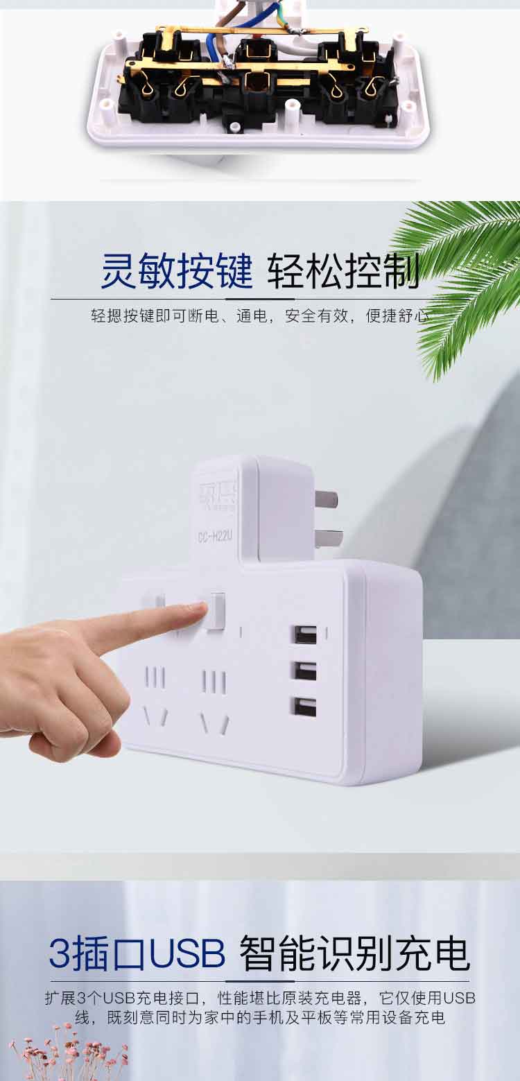 雷摄LEISE 一转二USB插座分控无线转换插座/转换插头/电源转换器 3口USB+2位CC-H22U 件 白色