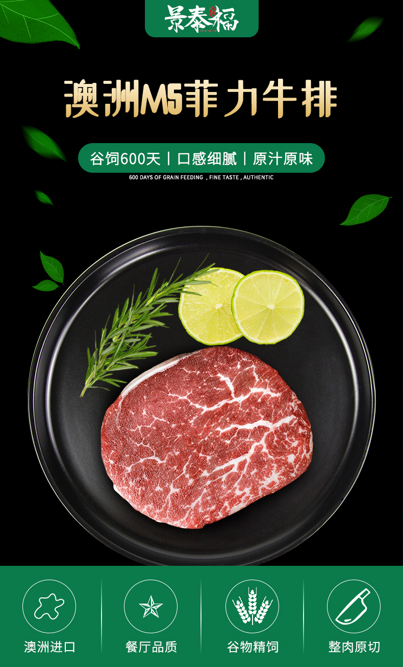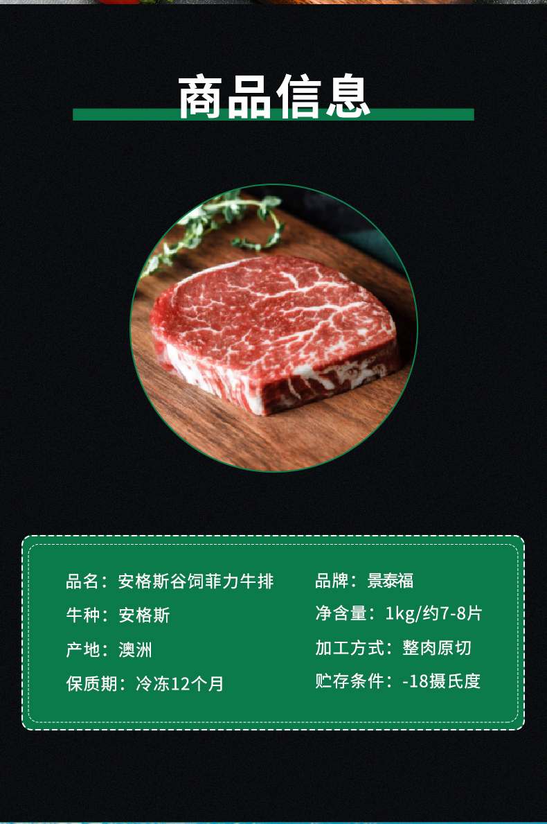 景泰福安格斯原切M5M6谷饲雪花菲力牛排1000G 单位:盒 红色