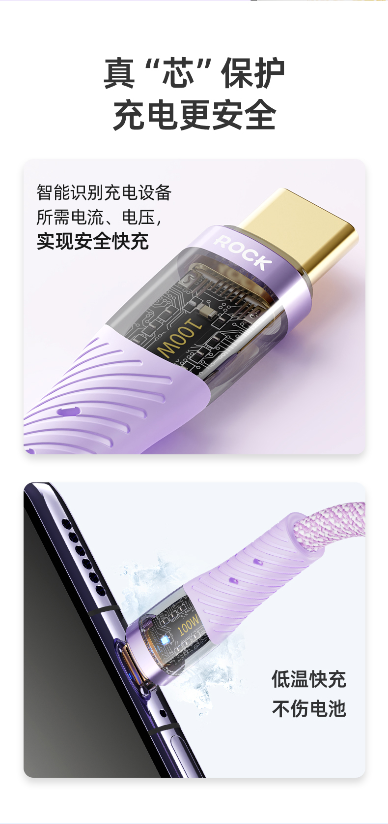 洛克(ROCK)Z21 Typec透明快充数据线 L=120CM RCB0837(单位:条) 星夜黑